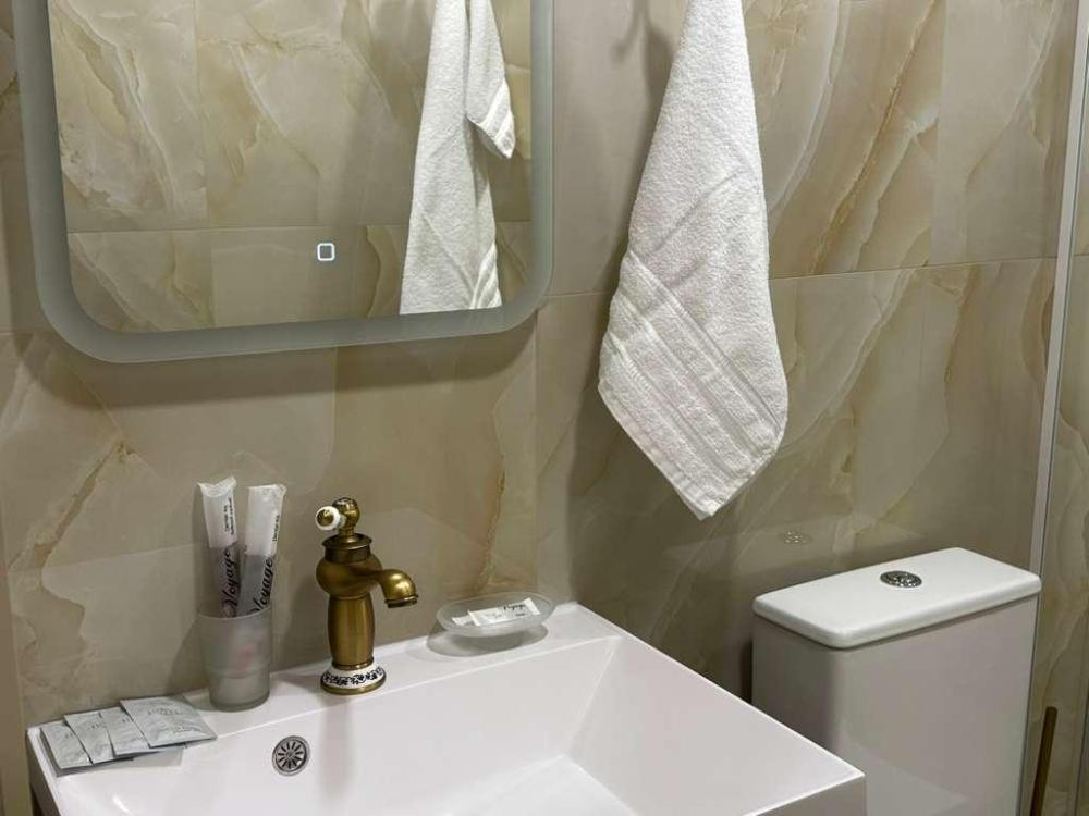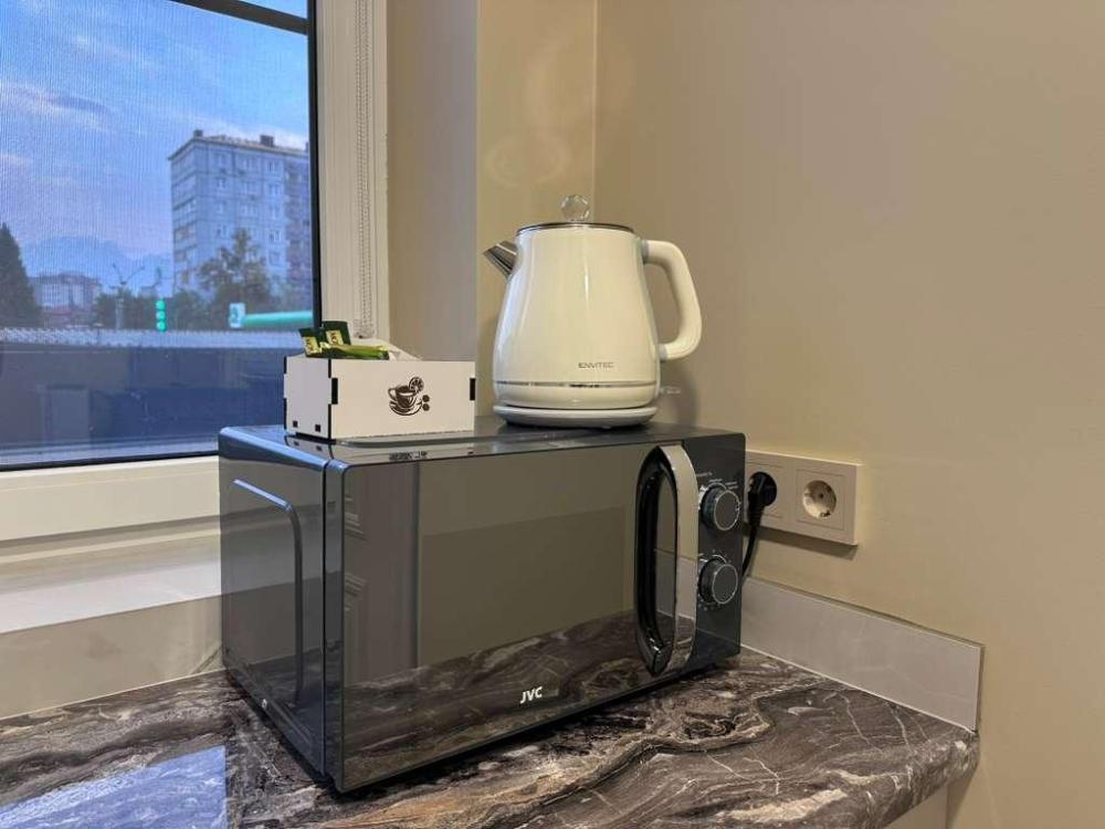 Уютные апартаменты со стильным ремонтом, новой комфортабельной мебелью и чудесным видом на горы. В номере, помимо двуспальной кровати с ортопедическим матрацом, также есть: ванная комната с душевой кабиной, оснащённая полным набором гигиенических средств, халатами, феном и безупречно функционирующей, эстетически привлекательной сантехникой, и, кухонная зона со столом, стульями, варочной панелью с вытяжкой, микроволновой печью, электрическим чайников, кастрюлей, сковородой, посудой и столовыми приборами. Также на территории отеля расположена чудесная парковая зона со смотровой площадкой на реку Терек. К услугам гостей: теннисные корты, конные прогулки, баня и мангальная зона.
