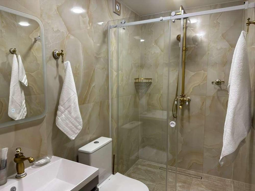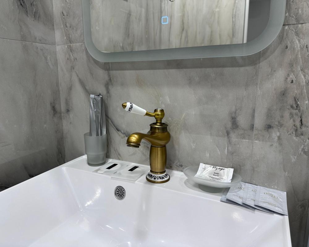 Просторный, уютный и стильный люкс с дизайнерским ремонтом. В номере три комнаты, включая две спальни с комфортабельными двуспальными кроватями и ортопедическими матрасами. К услугам гостей — три ванные комнаты: в одной из них установлена джакузи, в двух других — современные душевые кабины. Особую атмосферу уюта создает камин. Гостиная оборудована большим раскладным диваном, обеденным столом со стульями, а также барной стойкой с барными стульями — идеально для отдыха и приёма гостей. Номер оснащён всей необходимой бытовой техникой: большим холодильником, стиральной машиной, микроволновой печью, электрическим чайником, утюгом, гладильной доской, сушилкой для белья. Также есть полный набор посуды и столовых приборов для приготовления и приёма пищи. Для комфортного пребывания в любое время года в номере установлены кондиционеры.