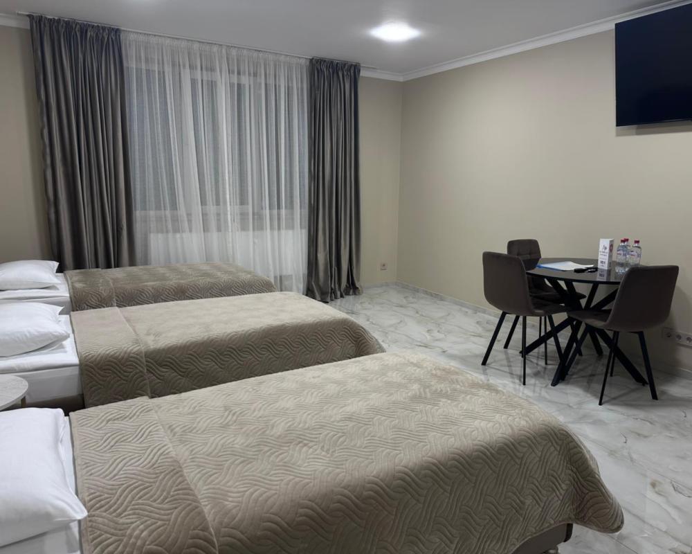 Современные апартаменты, находящиеся на втором этаже и позволяющие наслаждаться видом на горы. Cама студия оснащена двумя односпальными кроватями с ортопедическим матрасом, шкафом для одежды, холодильником, стиральной машиной, утюгом, сушилкой для белья, обеденным столиком и стульями, кондиционером, телевизором с выходом в интернет и кабельными каналами. Кроме того, апартаменты могут порадовать приятными мелочами, такими как чайные наборы для уютных вечеров. Также на территории отеля расположена чудесная парковая зона со смотровой площадкой на реку Терек. К услугам гостей: теннисные корты, конные прогулки, баня, мангальная зона.