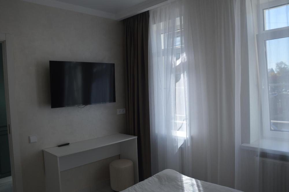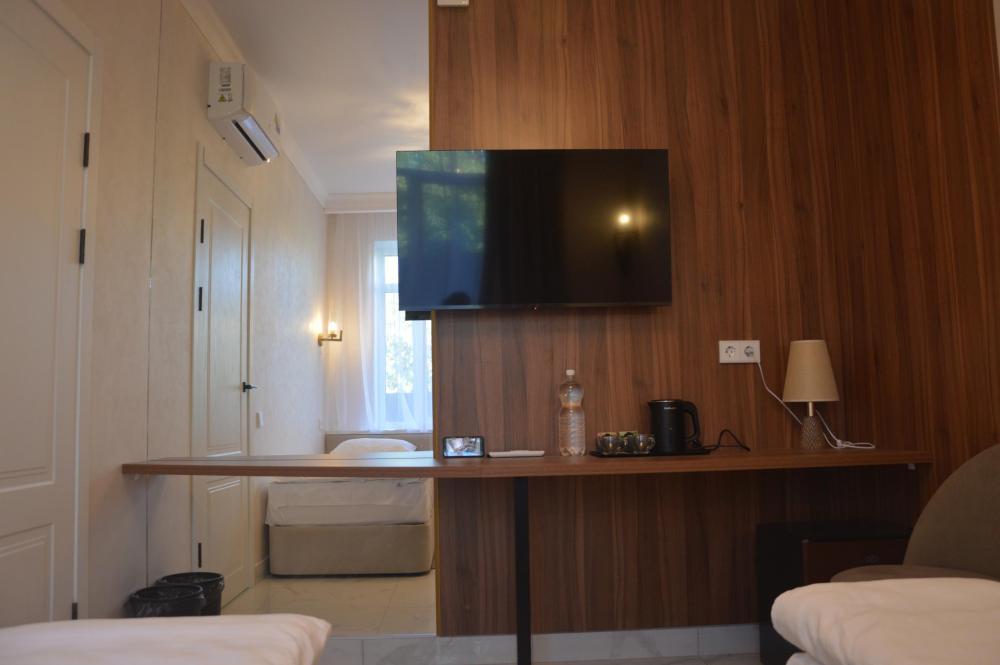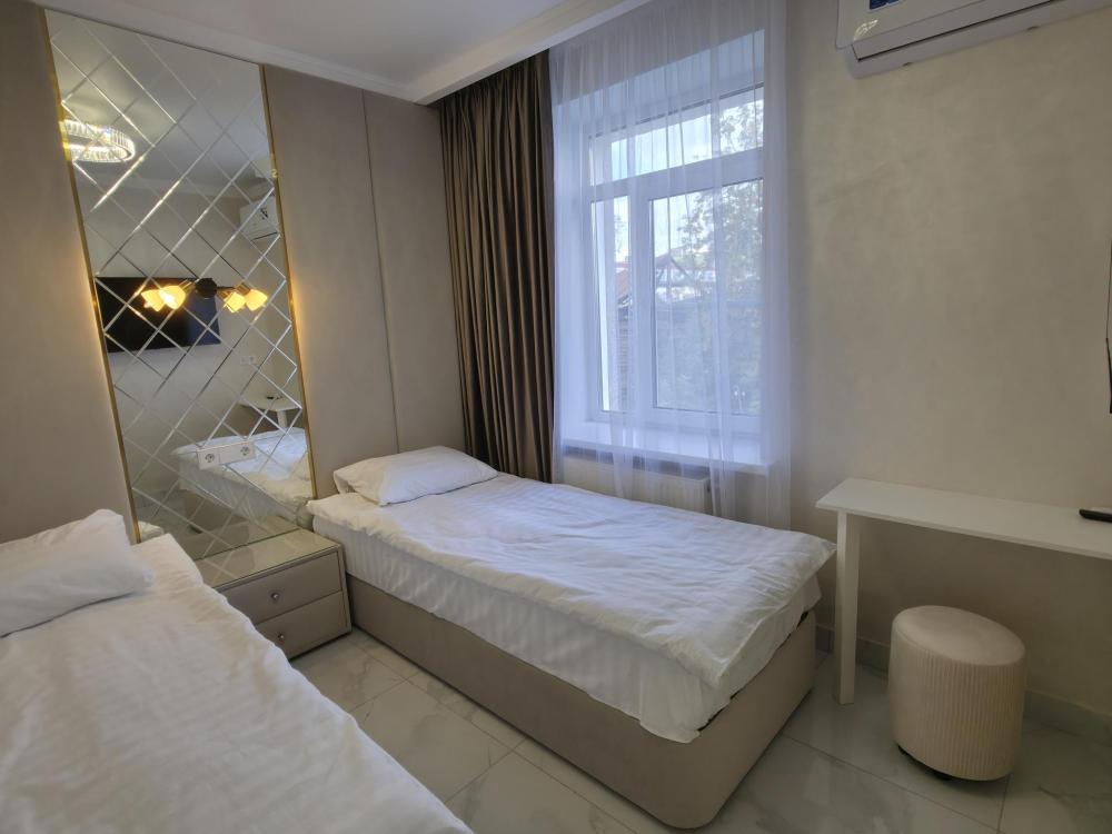 Современный дизайнерский номер повышенной комфортности подходит для размещения одного гостя. В номере собственная ванная комната, вся необходимая мебель, удобный матрас и кровать с ортопедическим основанием(110*200). . Оформление в светлых оттенках с современными элементами интерьера гармонирует с удобной мебелью для сна и дневного отдыха. Каждый номер оснащен кондиционером, мини-холодильником, телевидением и бесплатным Wi-Fi.
