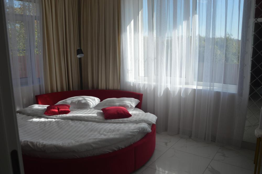 Номер повышенной комфортности, с улучшенной планировкой и современным дизайном, подходит как одного гостя или парного размещения, так и для компании до 4 человек, номер располагает удобной двуспальной кроватью и двуспальным диваном.Оформление в винном оттенке с современными элементами интерьера гармонирует с удобной мебелью для сна и дневного отдыха, а большая круглая кровать - изюминка данного номера. Каждый номер оснащен кондиционером, мини-холодильником, телевидением и бесплатным Wi-Fi.