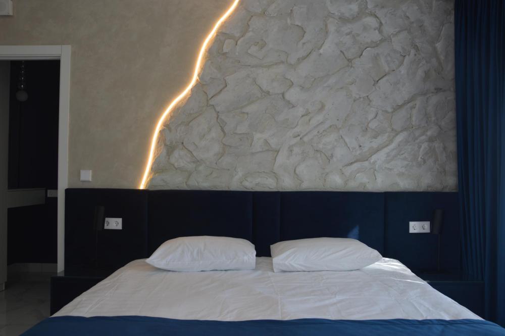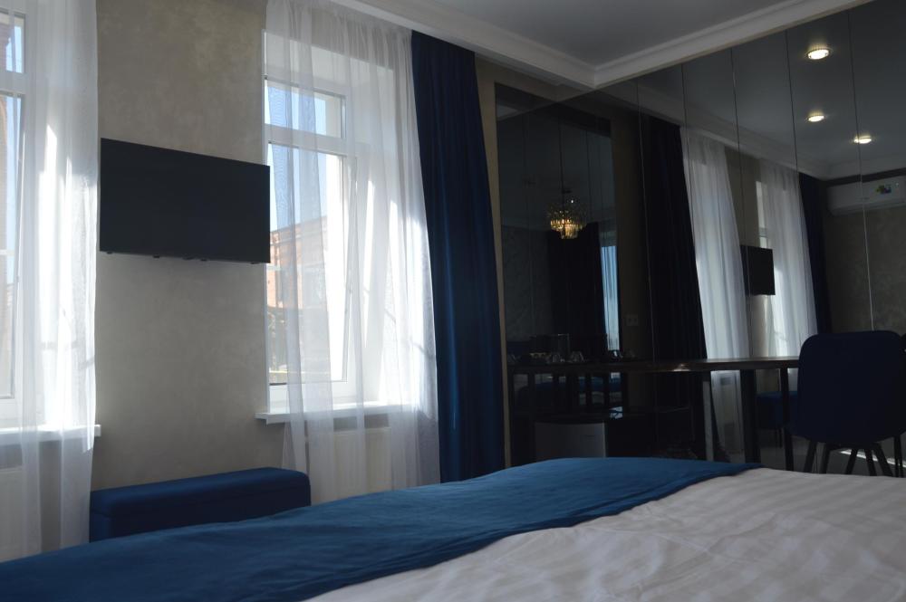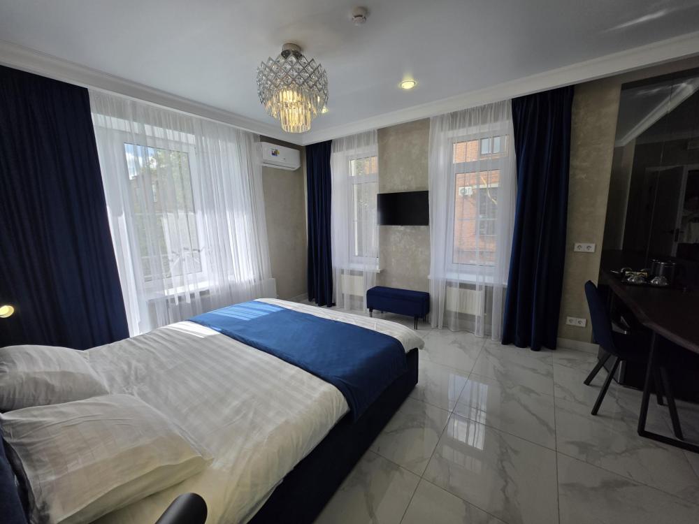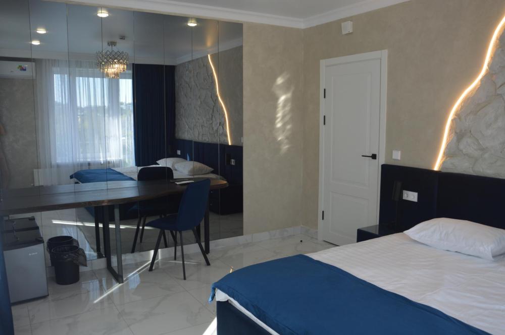 Дизайнерский номер категории «Делюкс» идеален для проживания как одного гостя или парного размещения, так и для компании до 3 человек, номер располагает удобной двуспальной кроватью и комфортным диваном для 1 гостя! Оформление в приглушенном синем оттенке с современными элементами интерьера гармонирует с удобной мебелью для сна и дневного отдыха. Каждый номер оснащен кондиционером, мини-холодильником, телевидением и бесплатным Wi-Fi