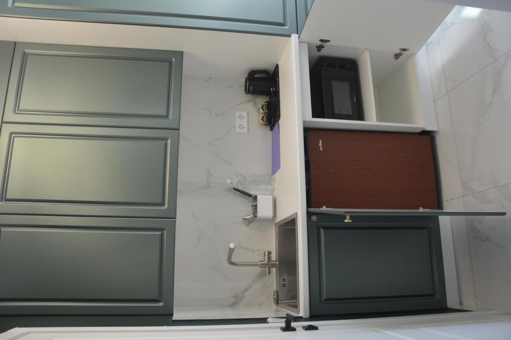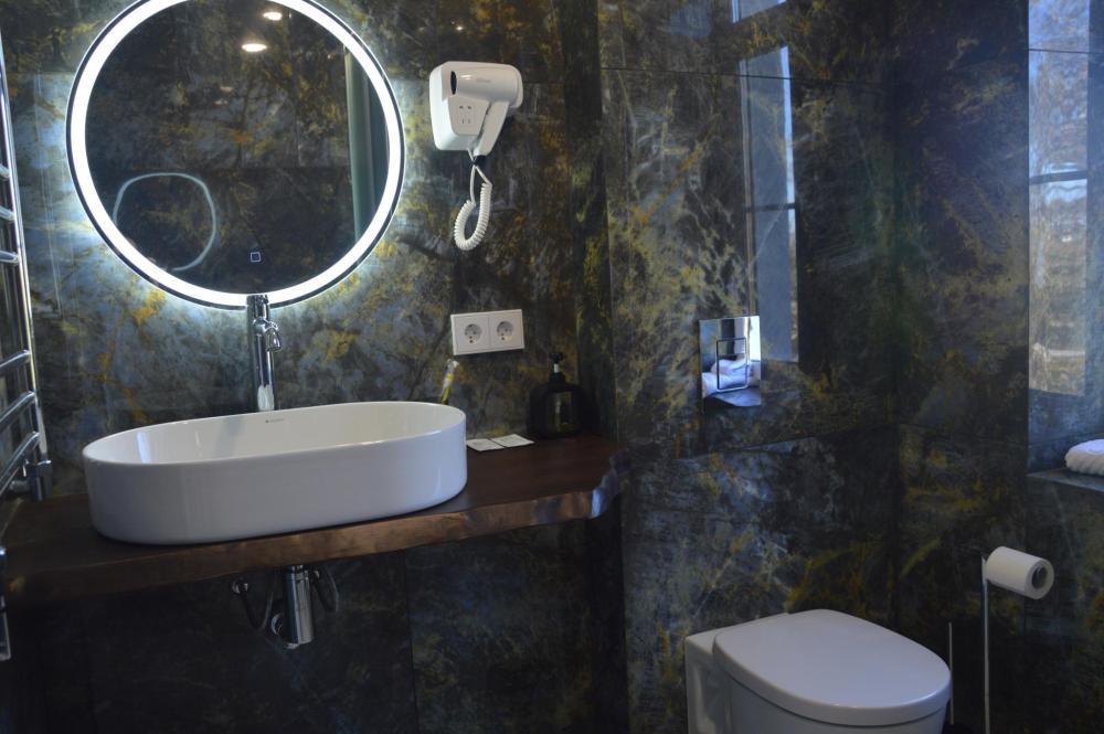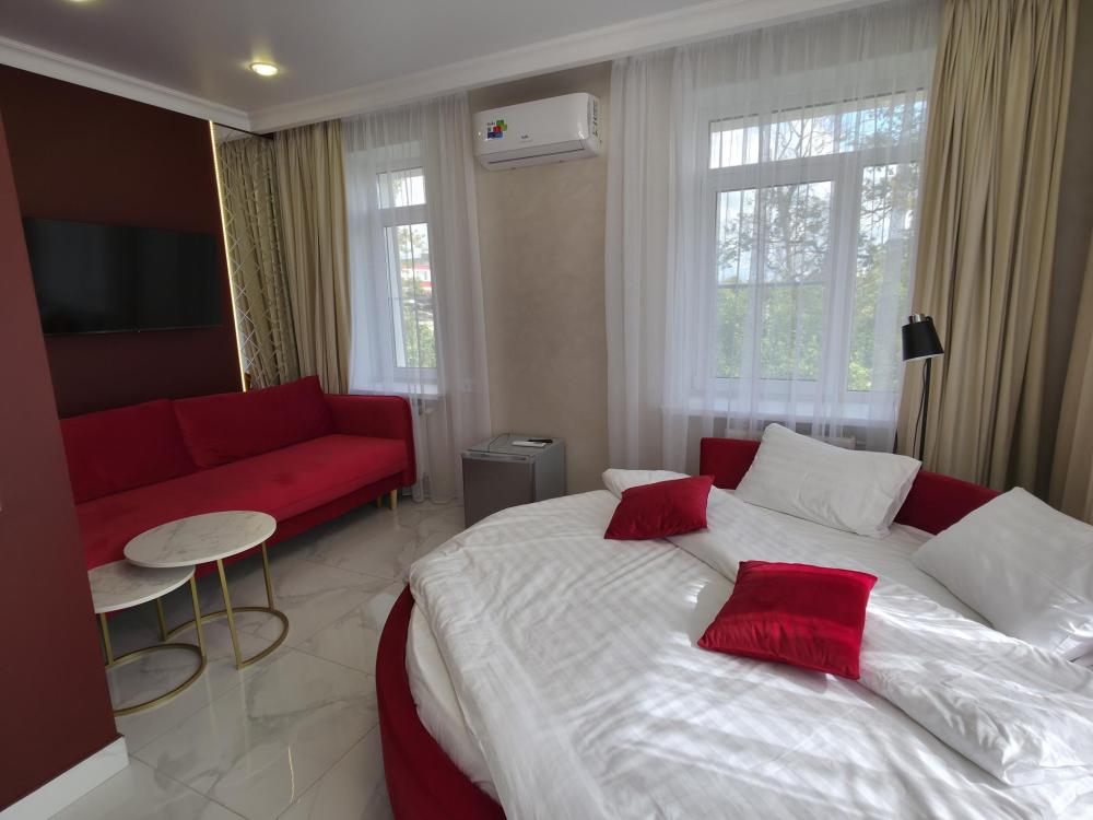 Современный и дизайнерский номер идеален для проживания как одного гостя или парного размещения, так и для компании до 4 человек, номер располагает удобной двуспальной кроватью и двуспальным диваном! Оформление в приглушенном оттенке графит с современными элементами интерьера гармонирует с удобной мебелью для сна и дневного отдыха. Пространство номера имеет спальную и гостиную зоны, а также изюминка номера - барная стойка. Каждый номер оснащен кондиционером, мини-холодильником, телевидением и бесплатным Wi-Fi.
