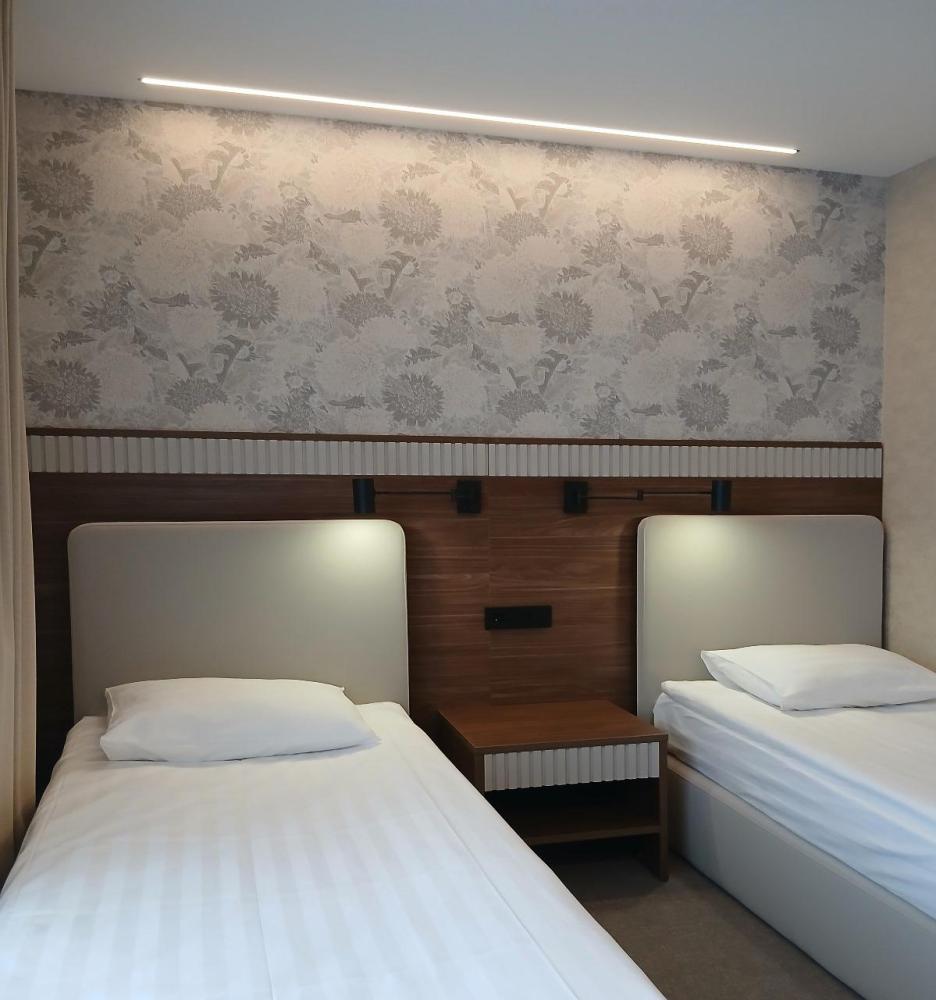 Уютный номер с двумя односпальными кроватями и прикроватными тумбочками для комфортного размещения одного или двух человек. В номере есть все, что может понадобиться для комфортного отдыха: • Телевизор (более 70 каналов). • Телефон, который можно использовать для внутренней связи. • Холодильник. • Кондиционер. • Шкаф для одежды с вешалками. • Полка для багажа. • Полка для обуви. • Wi-Fi. • USB-розетка. • Прикроватное освещение для чтения. • Чайник. • Гладильная доска и утюг (по запросу). Санузел: • Полы с подогревом. • Душевая кабина. • Комплект туалетных принадлежностей: мыло, шампунь, шапочка для душа. • Полотенца. • Фен