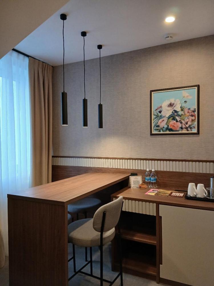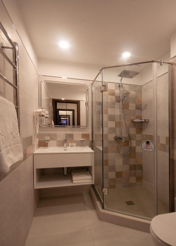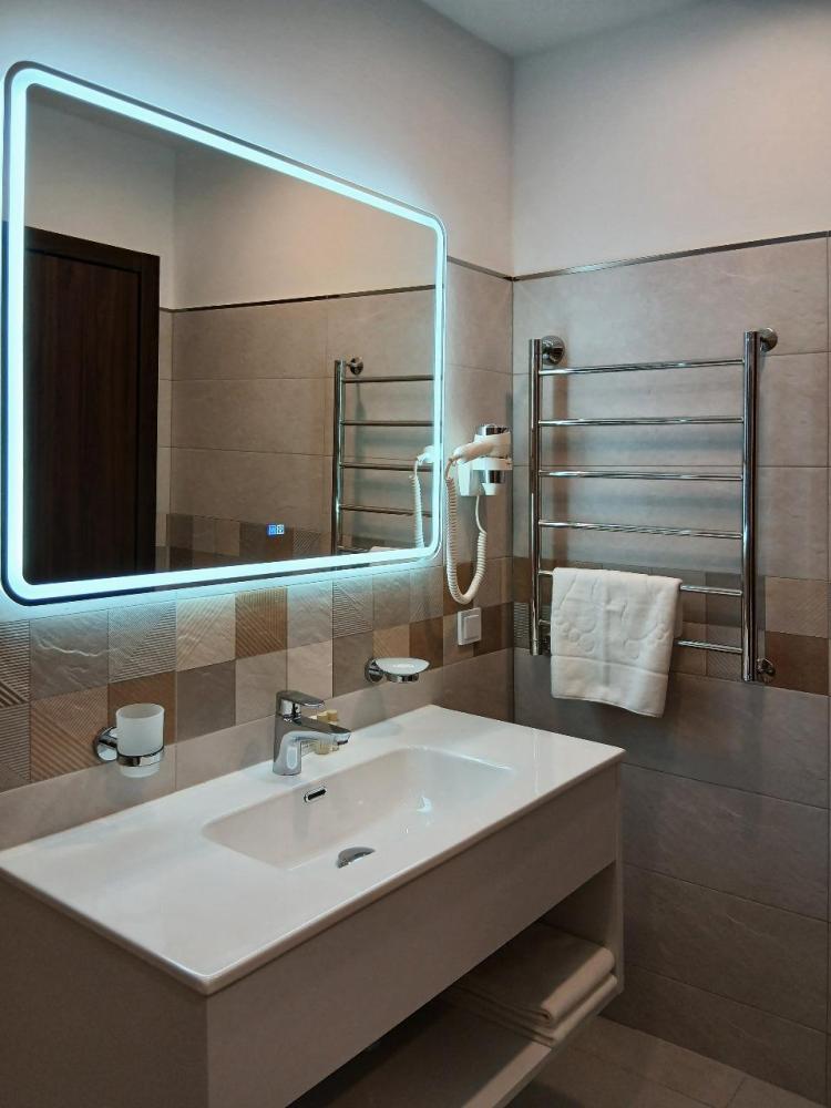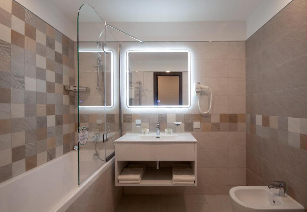 В номере есть все, что может понадобиться для комфортного отдыха: • Стол-тумба с телевизором (более 70 каналов). • Телефон, который можно использовать для внутренней связи. • Холодильник. • Кондиционер. • Шкаф для одежды с вешалками. • Полка для багажа. • Полка для обуви. • Wi-Fi. • USB-розетка. • Прикроватное освещение для чтения. • Чайник. • Гладильная доска и утюг (по запросу). Санузел: • Полы с подогревом. • Душевая кабина. • Комплект туалетных принадлежностей: мыло, шампунь, шапочка для душа. • Полотенца.