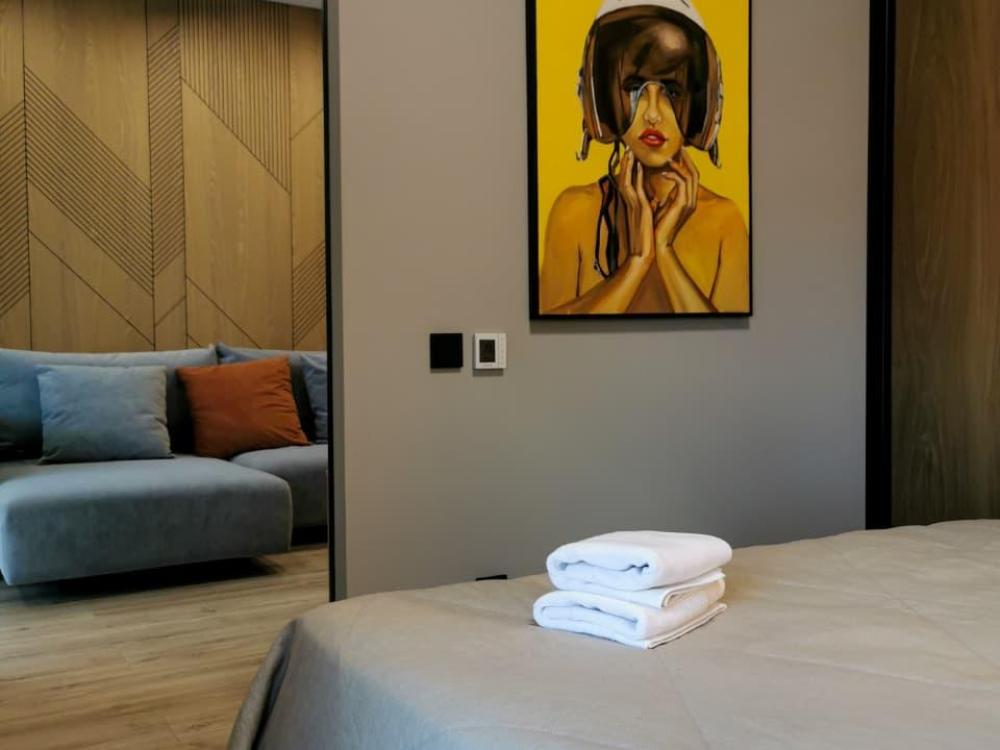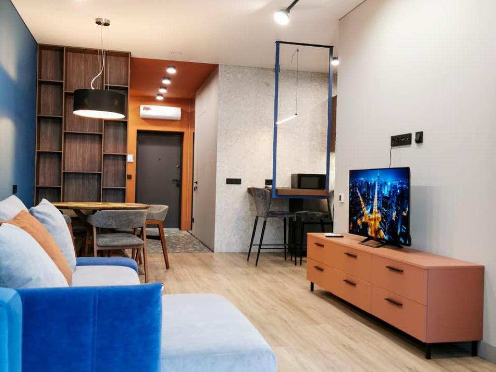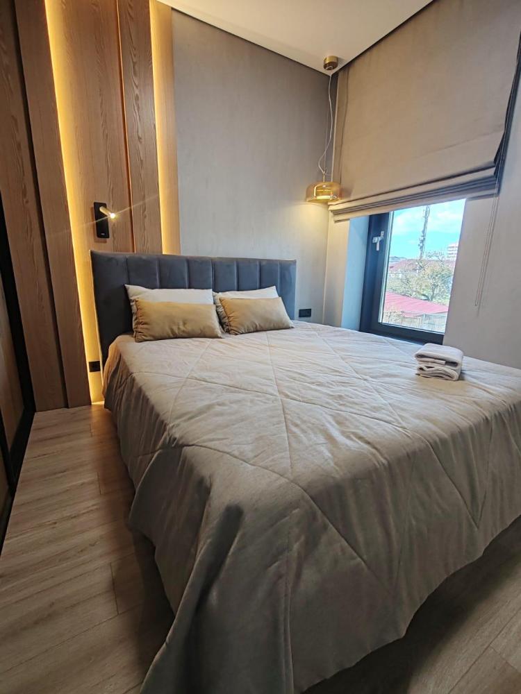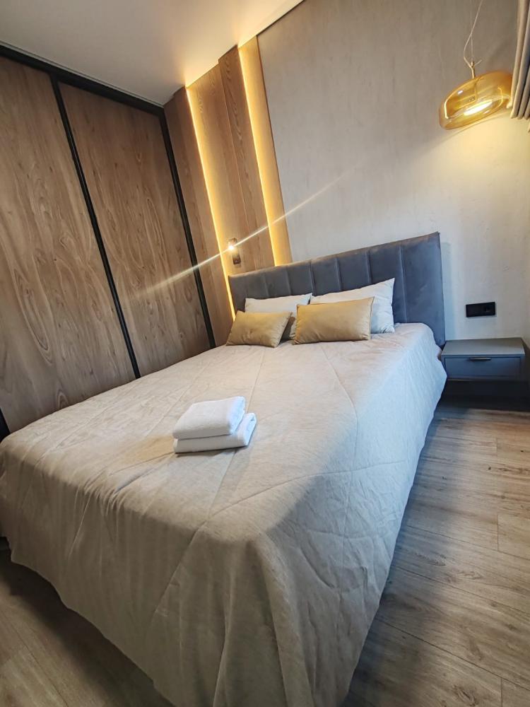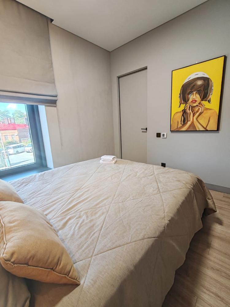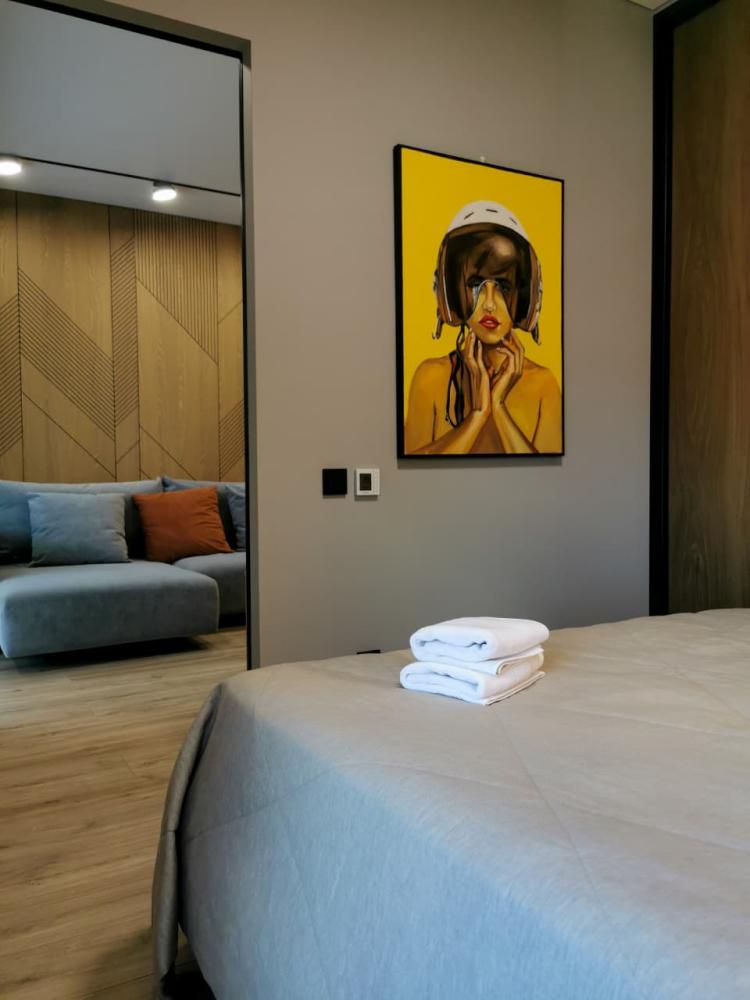 Уютная двухкомнатная квартира с современным ремонтом и панорамными окнами. Спальные места: двуспальная кровать, раскладной диван. В апартаментах: кухня, оборудованная всей необходимой техникой и посудой, санузел с душем, уютная лоджия.