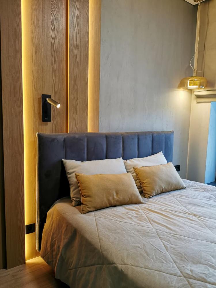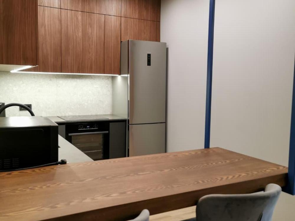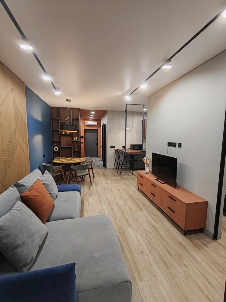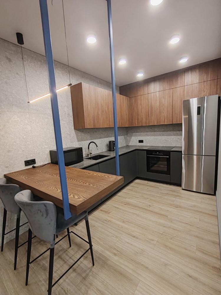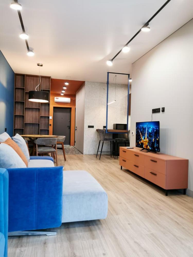 Уютная двухкомнатная квартира с современным ремонтом и панорамными окнами. Спальные места: двуспальная кровать, раскладной диван. В апартаментах: кухня, оборудованная всей необходимой техникой и посудой, санузел с душем, уютная лоджия.