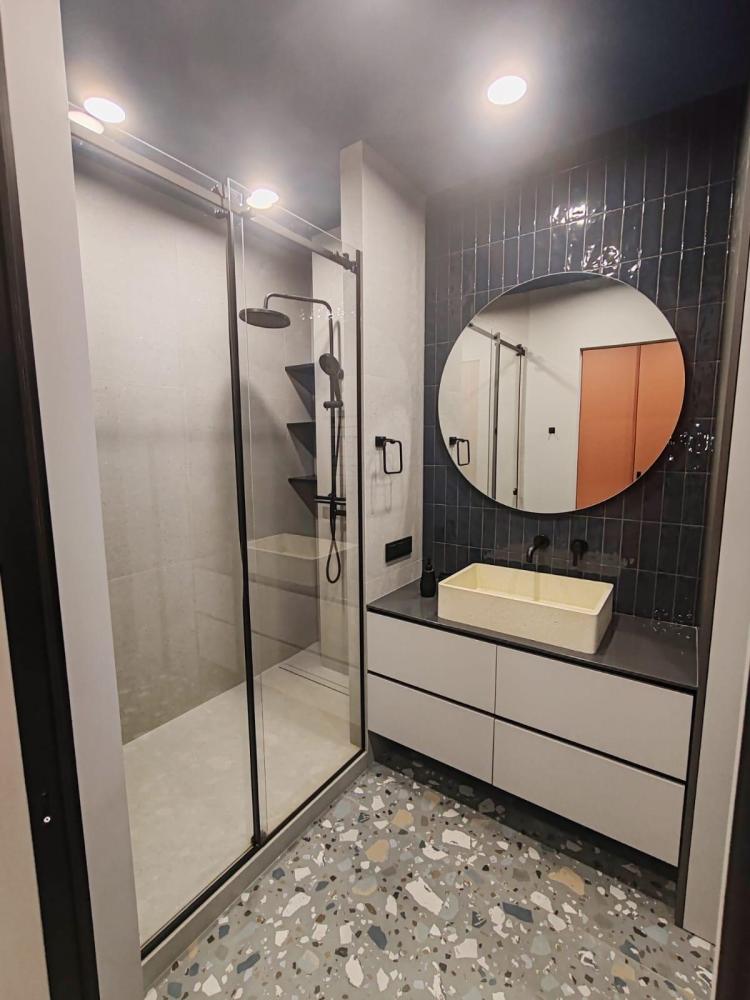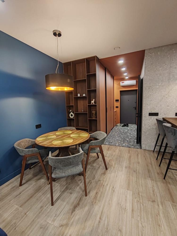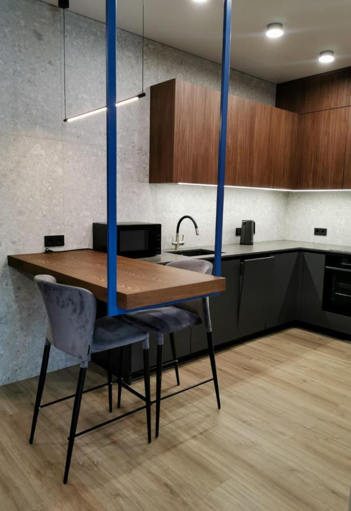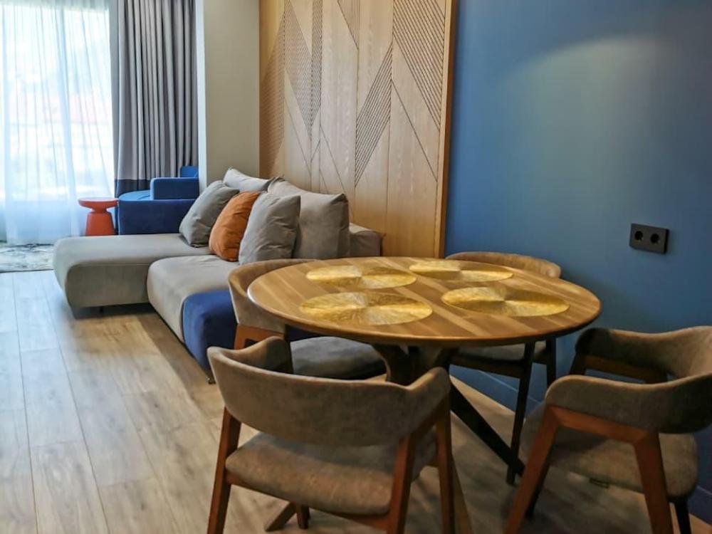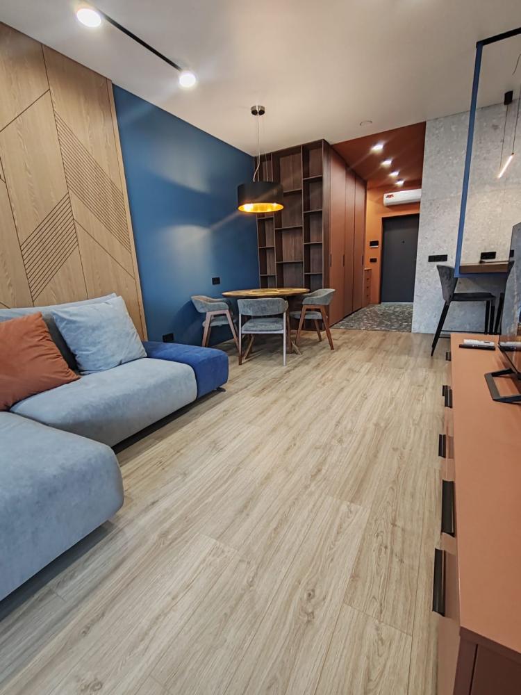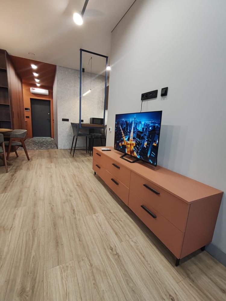 Уютная двухкомнатная квартира с современным ремонтом и панорамными окнами. Спальные места: двуспальная кровать, раскладной диван. В апартаментах: кухня, оборудованная всей необходимой техникой и посудой, санузел с душем, уютная лоджия.