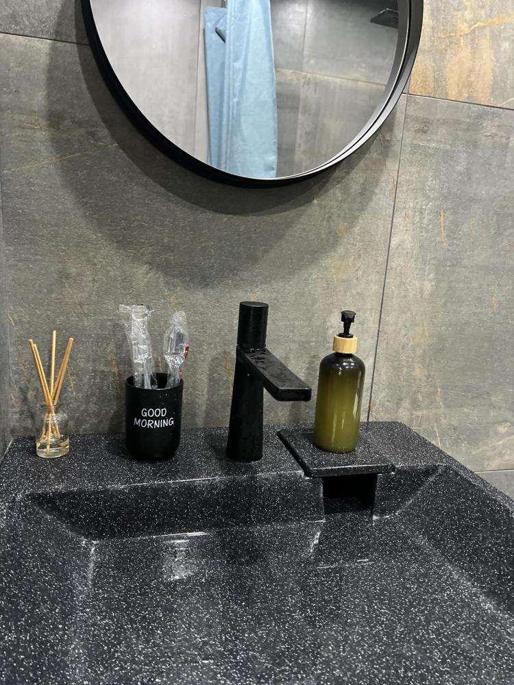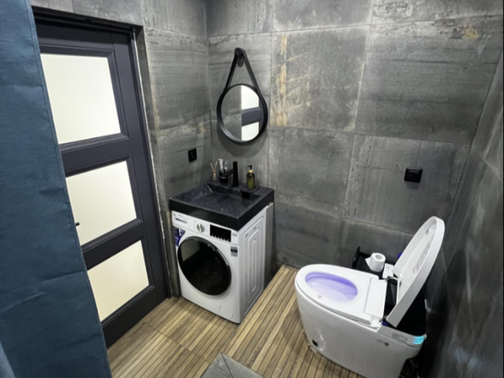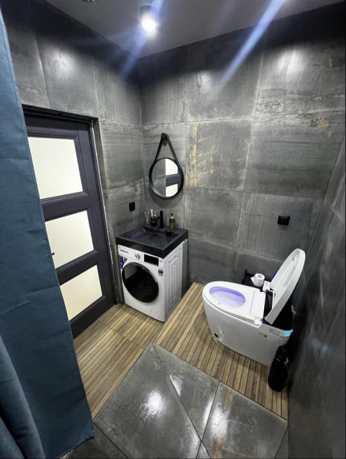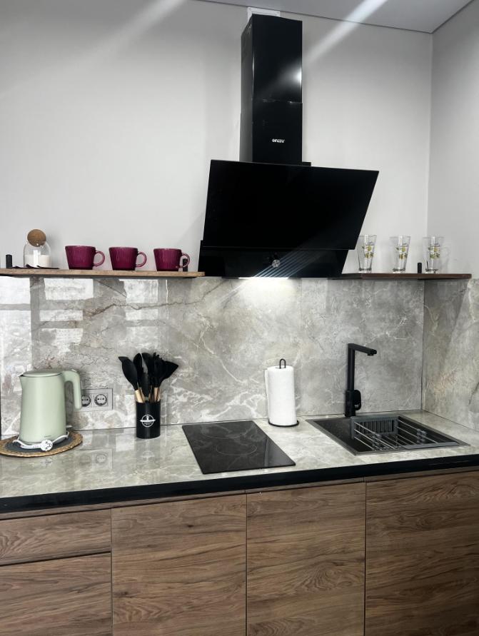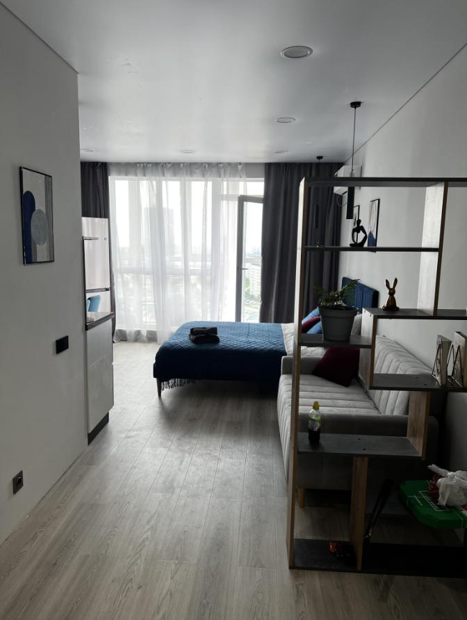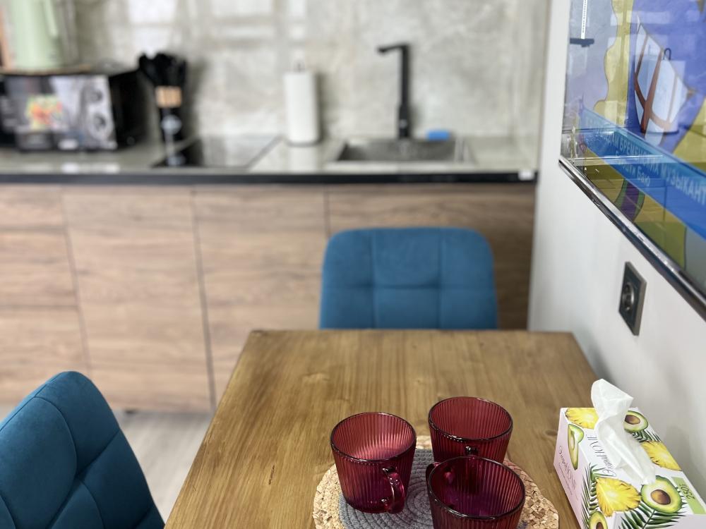 Квартира оснащена всем необходимым для комфортного проживания гостей. Имеется кухня с посудой и бытовой техникой, в ванной установлена стирально-сушильная машина, температурный режим в квартире поддерживают теплые полы и стены, кондиционер, конвекторы. Бытовая техника: SMART Телевизор, микроволновая печь, пылесос, утюг, фен, большой вместительный холодильник.