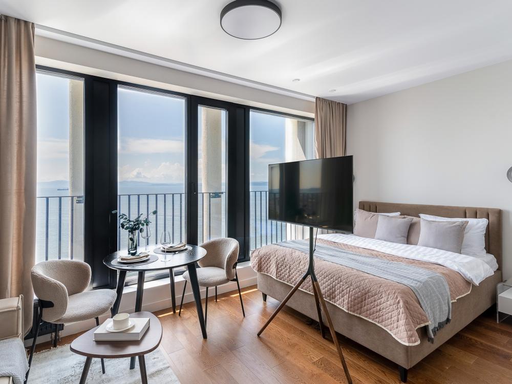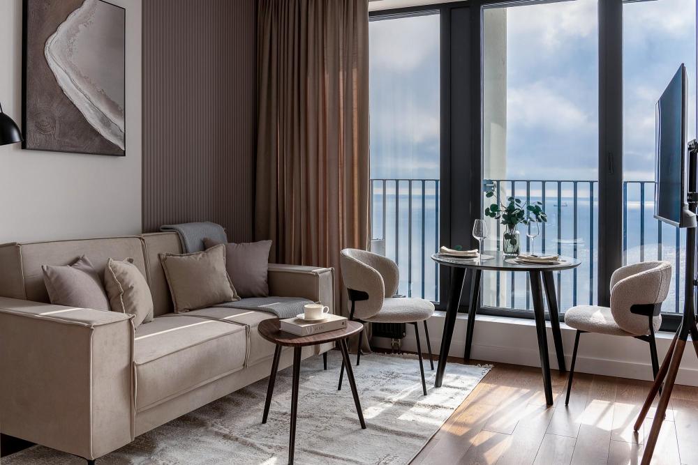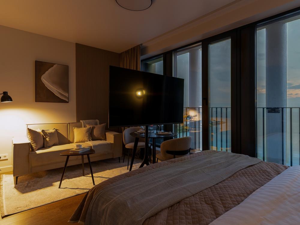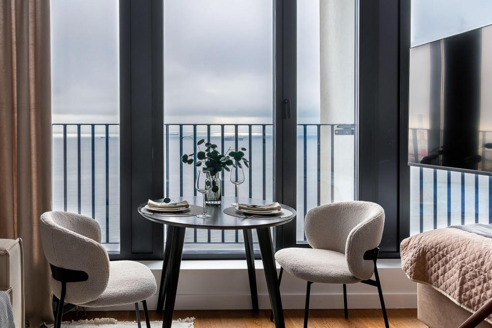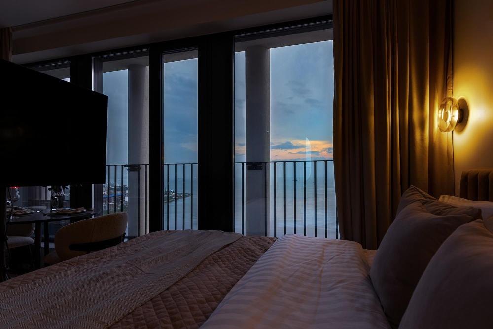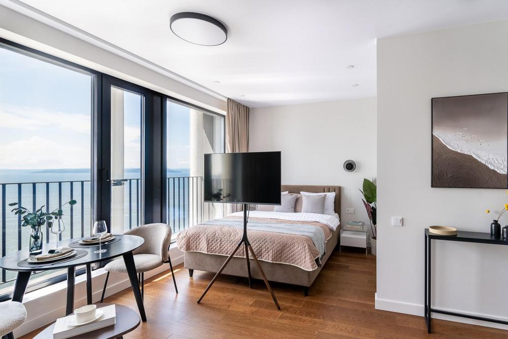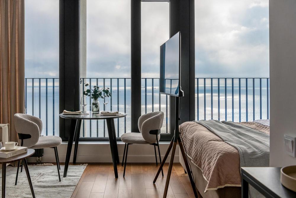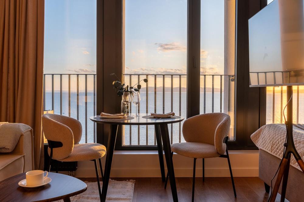 Уютные апартаменты в нежных тонах с панорамным видом на море. Погрузитесь в атмосферу спокойствия и гармонии в наших светлых апартаментах, оформленных в мягких пастельных оттенках. Здесь каждый элемент создан для того, чтобы вы чувствовали себя как в курортном отеле, но с теплом домашнего уюта. Особенности квартиры: ✔ Просторная студия с зонированием на спальную и гостевую зоны. ✔ Большие окна с видом на море – провожайте закаты, не вставая с кровати. Особенно красиво во время штормового ветра. ✔ Дизайн в пастельных тонах – создают расслабляющую атмосферу. ✔ Удобная кровать с ортопедическим матрасом и качественным бельем. ✔ Полноценная кухня с чайником, микроволновкой/духовкой, холодильником и базовой посудой. ✔ Бесплатный Wi-Fi, Smart TV, кондиционер. ✔ Терраса/балкон где можно постоять под звуки прибоя. Почему стоит выбрать нас? - Идеально для романтического отдыха – мягкие тона и вид на море создают особую атмосферу. - Фото в Instagram – интерьер в пастельной гамме выглядит эстетично и «цепляет» взгляд. Расположение: - прям на берегу моря; - В доме есть кафе, зоны отдыха как во дворе так и на крыше с мягкой мебелью и шикарным видом закрытым прозрачными стеклами от ветра.