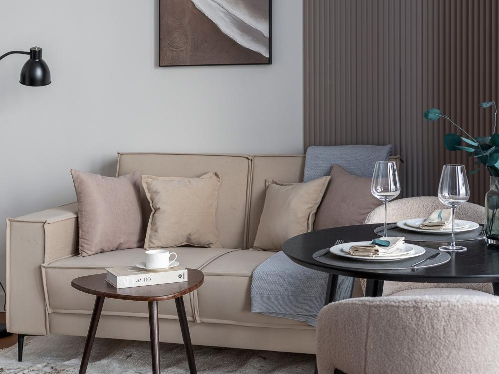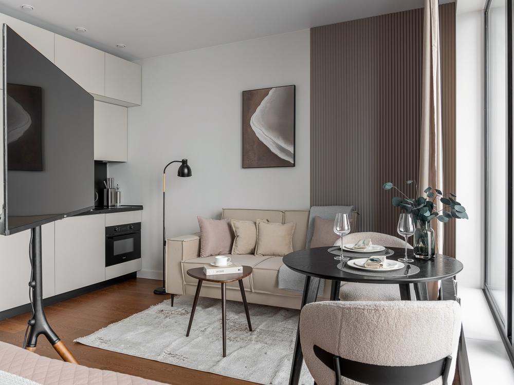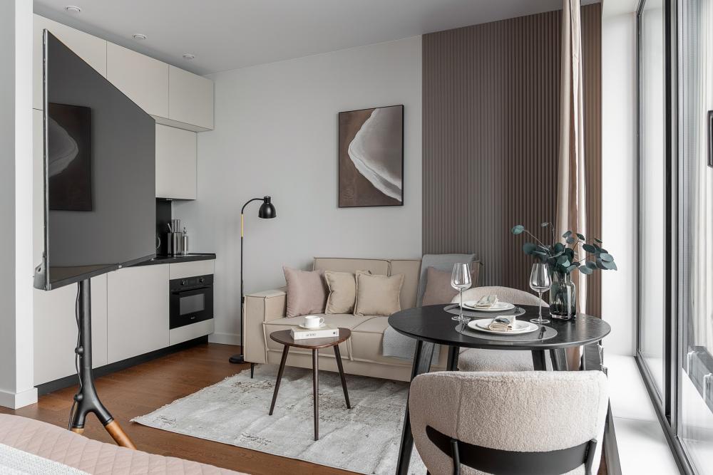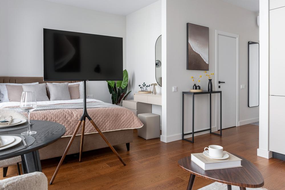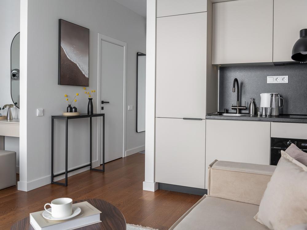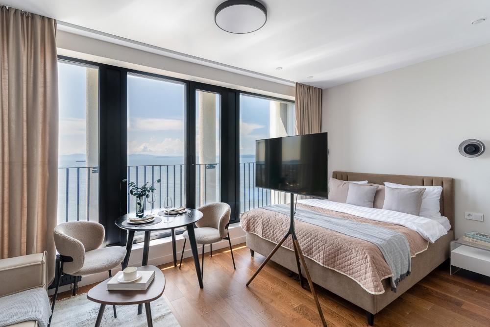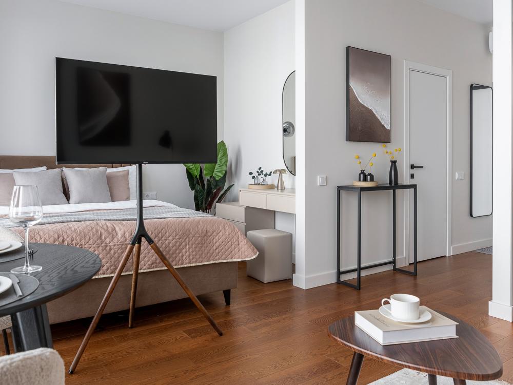 Уютные апартаменты в нежных тонах с панорамным видом на море. Погрузитесь в атмосферу спокойствия и гармонии в наших светлых апартаментах, оформленных в мягких пастельных оттенках. Здесь каждый элемент создан для того, чтобы вы чувствовали себя как в курортном отеле, но с теплом домашнего уюта. Особенности квартиры: ✔ Просторная студия с зонированием на спальную и гостевую зоны. ✔ Большие окна с видом на море – провожайте закаты, не вставая с кровати. Особенно красиво во время штормового ветра. ✔ Дизайн в пастельных тонах – создают расслабляющую атмосферу. ✔ Удобная кровать с ортопедическим матрасом и качественным бельем. ✔ Полноценная кухня с чайником, микроволновкой/духовкой, холодильником и базовой посудой. ✔ Бесплатный Wi-Fi, Smart TV, кондиционер. ✔ Терраса/балкон где можно постоять под звуки прибоя. Почему стоит выбрать нас? - Идеально для романтического отдыха – мягкие тона и вид на море создают особую атмосферу. - Фото в Instagram – интерьер в пастельной гамме выглядит эстетично и «цепляет» взгляд. Расположение: - прям на берегу моря; - В доме есть кафе, зоны отдыха как во дворе так и на крыше с мягкой мебелью и шикарным видом закрытым прозрачными стеклами от ветра.
