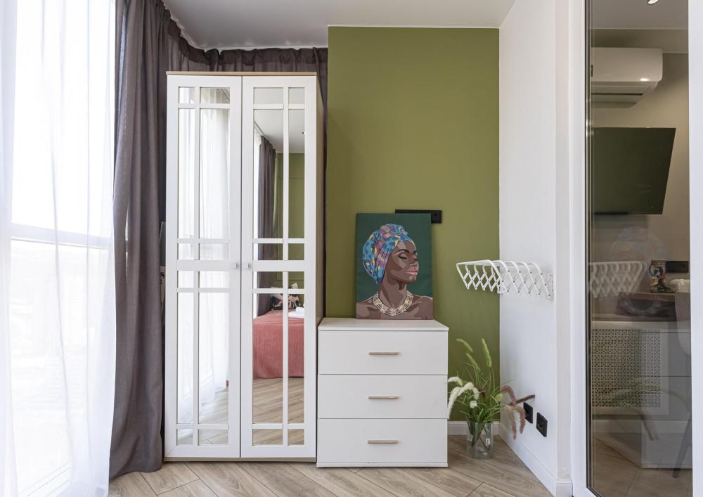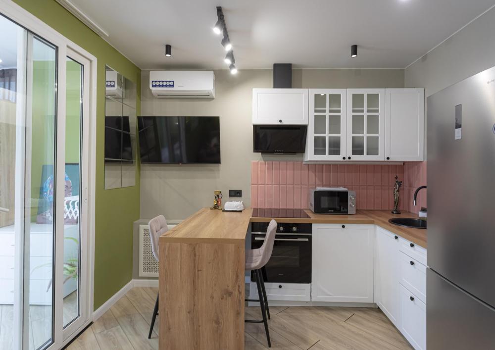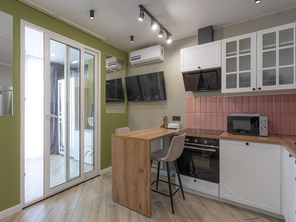 Уютные апартаменты на улице Полковника Фесюна. Для комфортного проживания гостей апартаменты оборудованы всем необходимым: мультимедиа- wi-fi, тeлeвидeние, телевизор, стиральная машина, электрическая плита, холодильник, микроволновая печь, духовка, электрочайник, фен, утюг, водонагреватель, кондиционер. Дополнительно: посуда, кухонные принадлежности, свежее хрустящее постельное бельё и мягкие полотенца, гладильная доска. Удобства: раскладной диван, гардеробная, ванная.