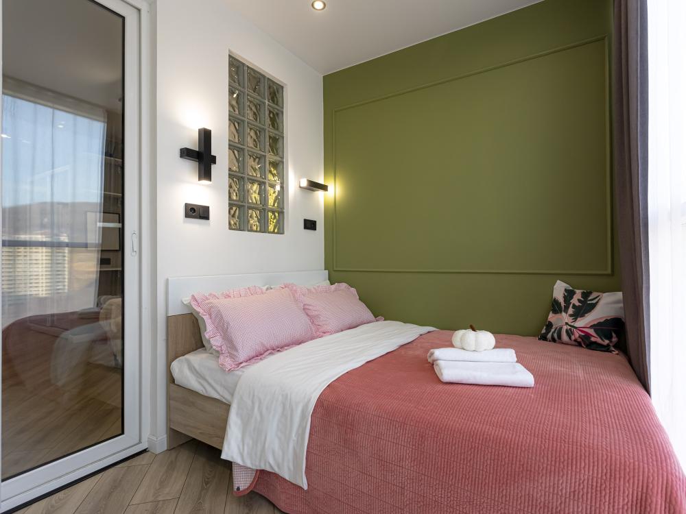 Уютная новая студия с шикарным видом Наши апартаменты оснащены: - Мультимедиа: wi-fi, тeлeвидeние. - Бытовая техника: телевизор, стиральная машина, электрическая плита, холодильник, микроволновая печь, духовка, электрочайник, фен, утюг, водонагреватель, кондиционер. Дополнительно: посуда, кухонные принадлежности, свежее хрустящее постельное бельё и мягкие полотенца, гладильная доска. Удобства: раскладной диван, кровать, ванная. По запросу – дополнительное место. 100% соответствие фото (может отличаться только текстиль) У нас высокие стандарты уборки! Гарантируем чистоту и порядок (при необходимости осуществляется влажная уборка за дополнительную плату) Размещаем командированных гостей и предоставляем полный пакет отчетных документов (за дополнительную плату). Условия заселения: -Наличие паспорта для осуществления договора краткосрочной аренды квартиры;-Курение и вечеринки строго запрещены. Правила заселения: Для вашего удобства мы предусмотрели бесконтактное заселение. Расчетное время заезда после 14:00; Расчетное время выезда до 12:00 (по договоренности можно изменить время заезда и выезда). Стоимость: Цена может меняться в зависимости от количества человек, дней проживания, сезонности, дней недели, праздников- актуальную цену на ваш период бронирования уточняйте ,пожалуйста. Возвратный залог 3000 При наличии свободных дат бронируем на одни сутки. При этом уборка оплачивается отдельно. Апартаменты не предоставляются: Для проведения шумных праздников и вечеринок; Лицам, не достигшим 18 лет; Лицам, курящим в помещении.