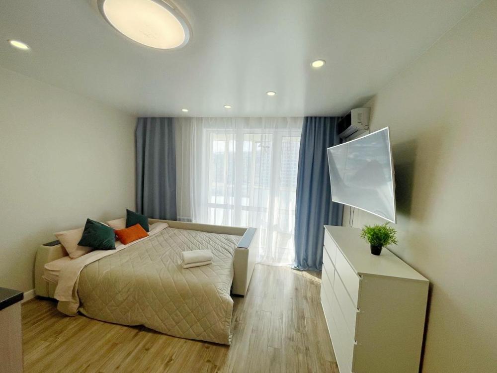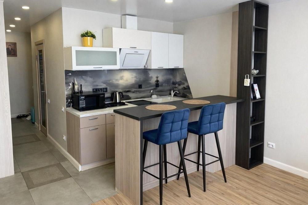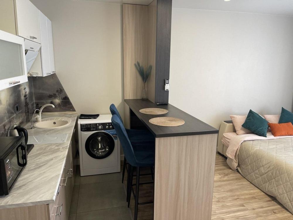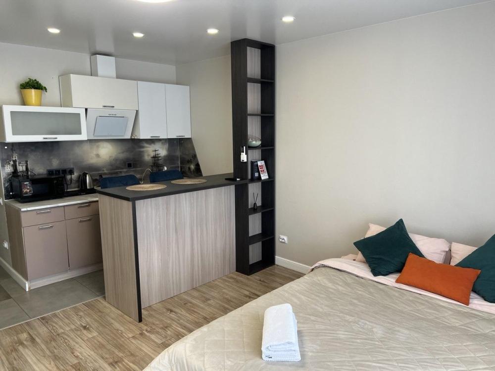 Уютная студия с новым ремонтом вблизи бухты Патрокл. В апартаментах: Wi-Fi, кaбельное тeлeвидeние Smart ТV. Бытовая техника: телевизор, стиральная машина, электрическая плита, холодильник, микроволновая печь, электрочайник, кофеварка, фен, утюг, водонагреватель. Дополнительно: посуда, кухонные принадлежности, свежее хрустящее постельное белье и мягкие полотенца, гладильная доска. Удобства: Большой раскладной диван. По запросу – дополнительное место.