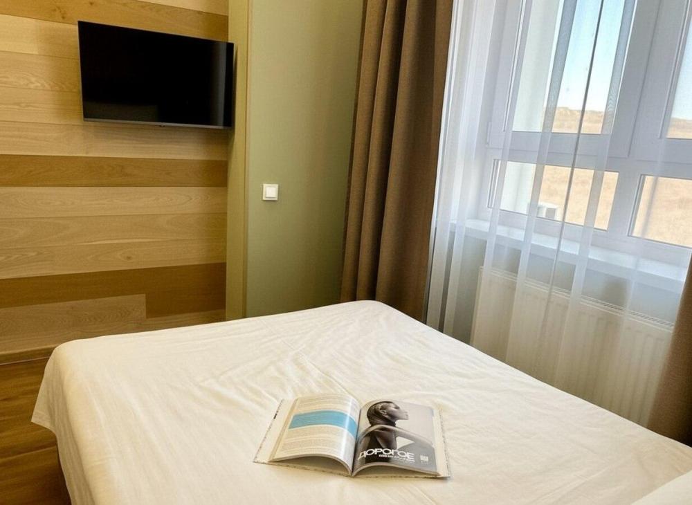 Апартаменты студия для 3 гостей. Спальные места: кресло-кровать и двуспальная кровать. В квартире находятся средства личной гигиены, фен, интернет (wi-fi), цифровое тв, постельные принадлежности, полотенца, стиральная машина, утюг, гладильная доска, мыло, шампунь, чай, сахар, сушка для белья. Бытовая техника: кондиционер, микроволновая печь, плита, стиральная машина, телевизор, холодильник, чайник, фен, утюг, теплый пол. Лоджия с панорамными окнами