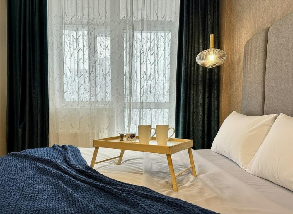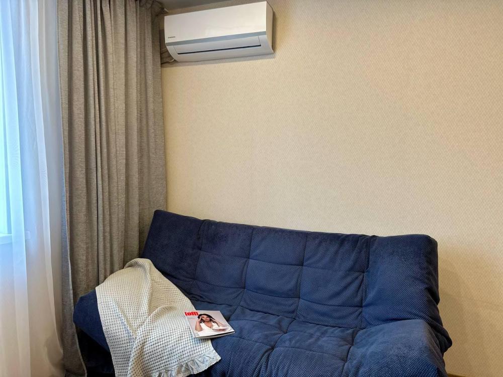 Однокомнатные апартаменты для 3 гостей. Спальные места: двуспальная кровать и кресло-кровать. В квартире находятся средства личной гигиены, фен, интернет (wi-fi), цифровое тв, постельные принадлежности, полотенца, стиральная машина, утюг, гладильная доска, мыло, шампунь, чай, сахар, сушка для белья, Бытовая техника: вытяжка, кондиционер, микроволновая печь, стеклокерамическая плита, стиральная машина, телевизор, холодильник, чайник, фен, утюг, теплый пол. Есть все необходимое для проживания и для приготовления пищи, а так же (шампунь, т.бумага,жидкое мыло, ср.для мытья посуды, с стир.порошок и т д).
