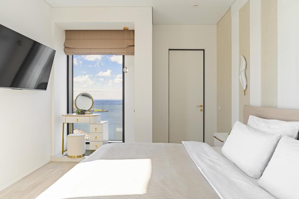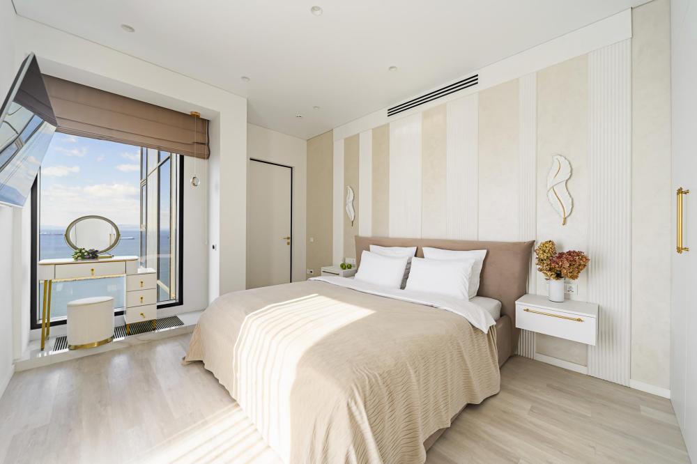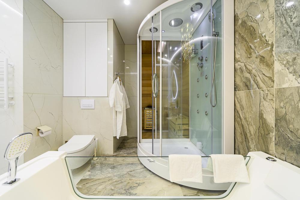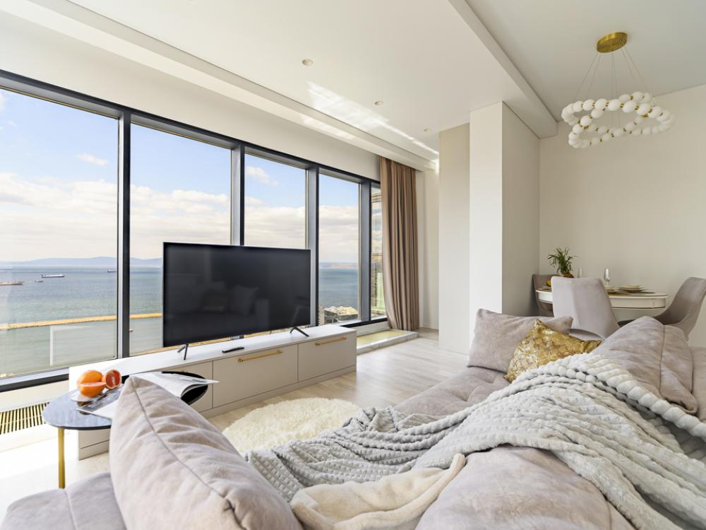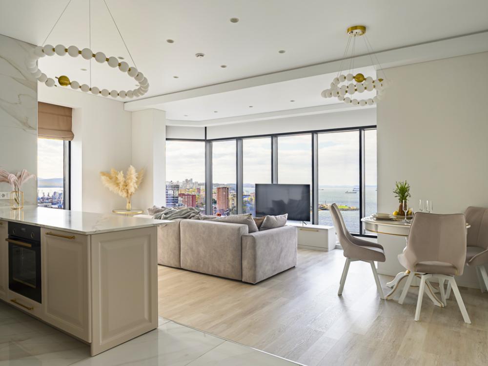 Апартаменты элит-класса с видом на море и Золотой мост в центре Владивостока! Просторная двухкомнатная квартира на 21 этаже в ЖК Аквамарин, 78 кв.м, терраса на крыше дома. 4 спальных мест: 2+2 (двуспальная кровать + двуспальный диван). В квартире современный лаконичный дизайн и огромные панорамные окна с завораживающим видом. Удобства в квартире: * Высокоскоростной Wi-Fi * Смарт ТВ на телевизорах * Система кондиционирования * Большое джакузи для 2-х человек * Мини-сауна с душевой кабиной