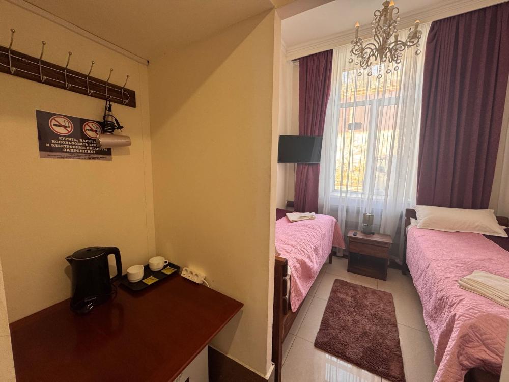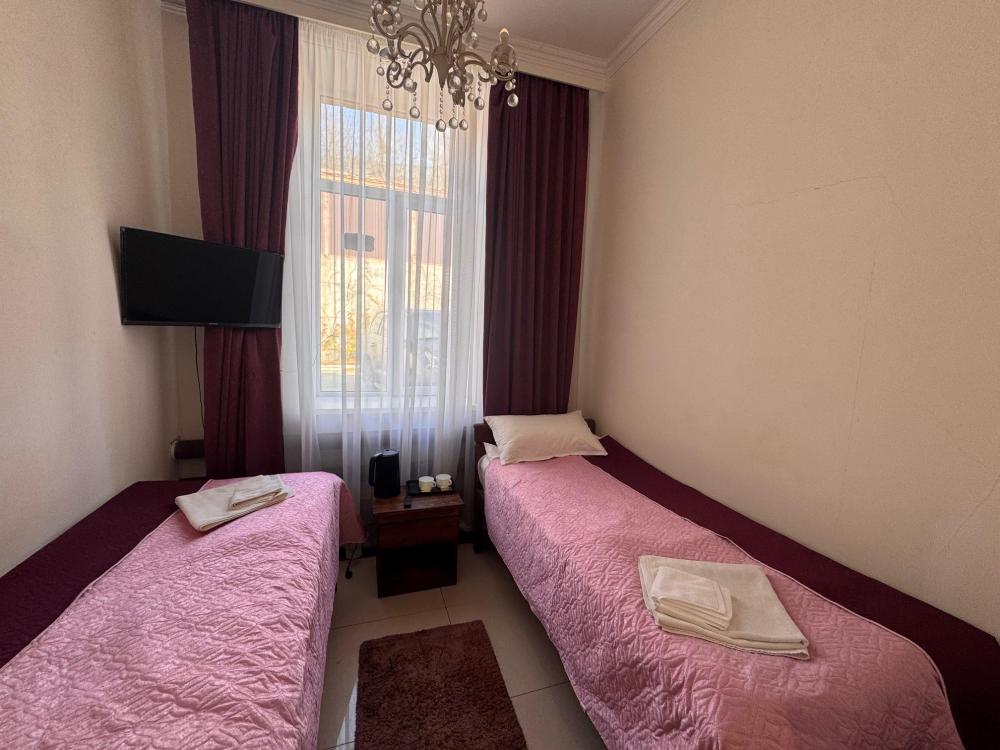 Номер эконом-мини с 2-мя раздельными кроватями, туалет и душ в номере, без тв и холодильника. Фен, упрощенная комплектация.