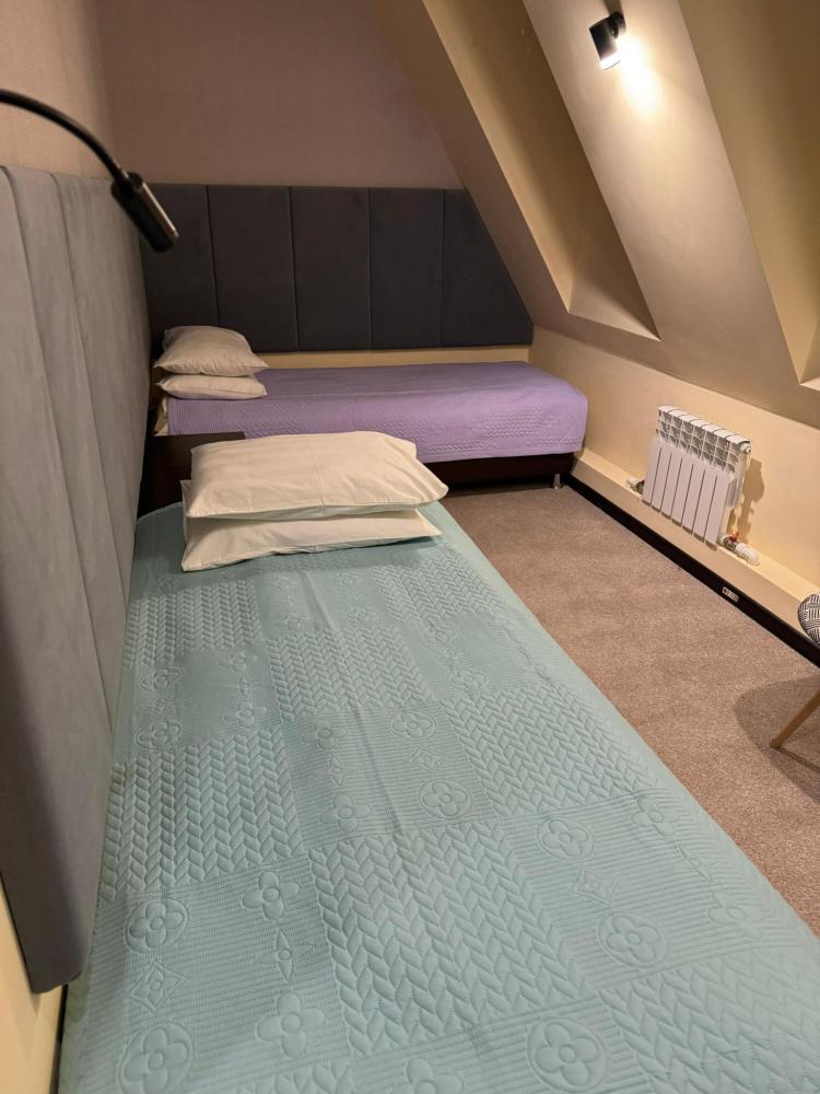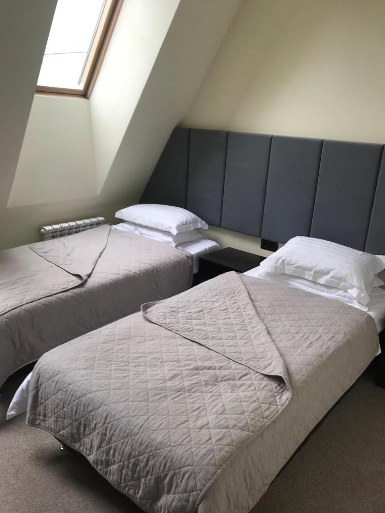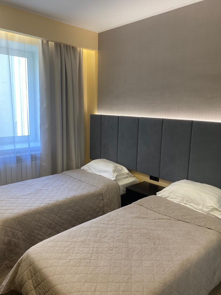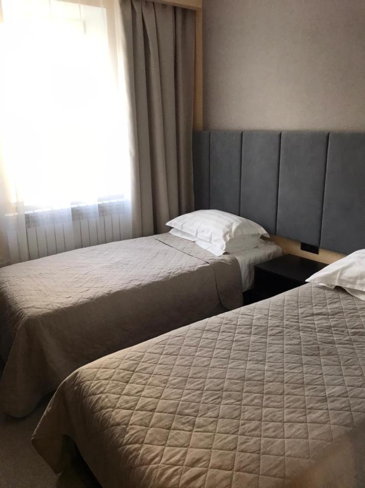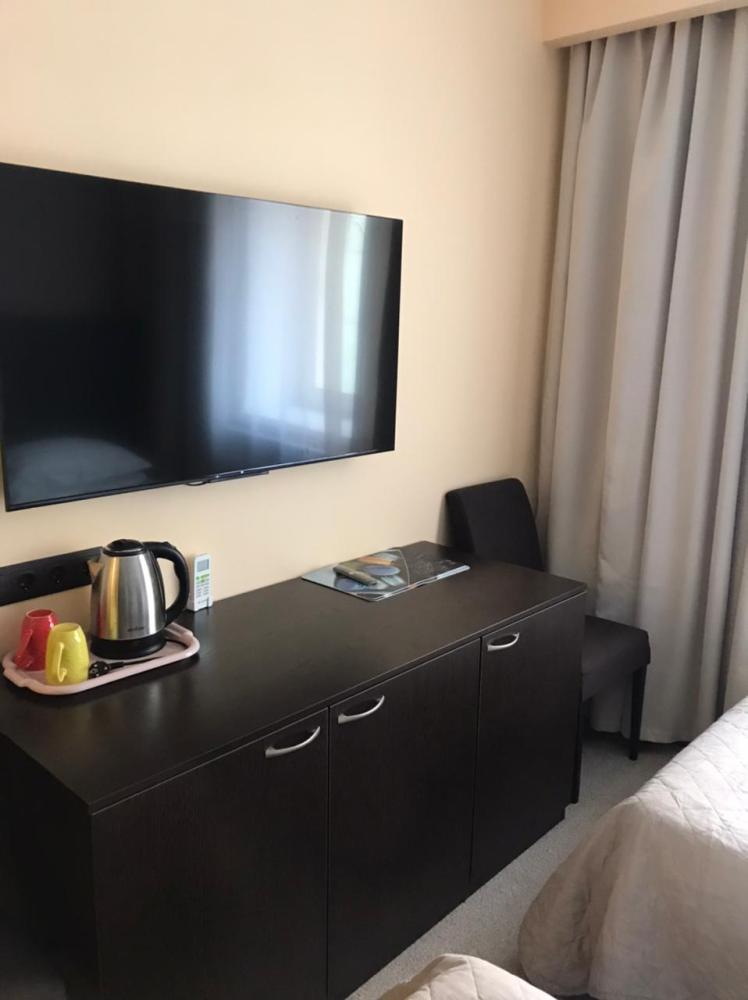 В номере: две односпальные кровати, телевизор, шкаф.