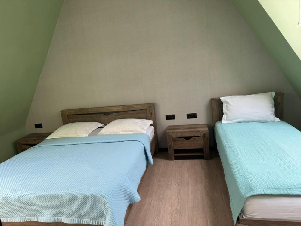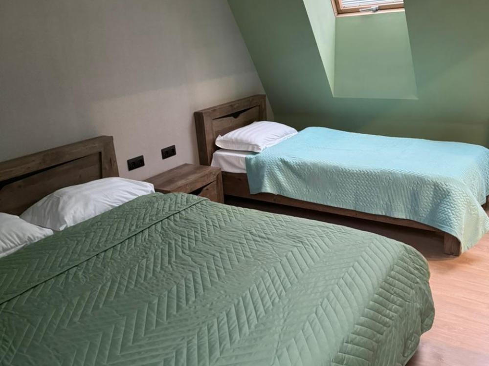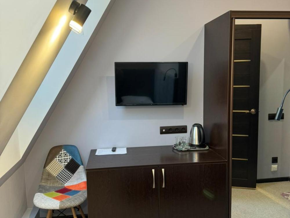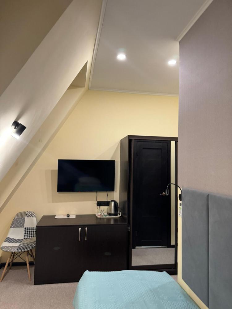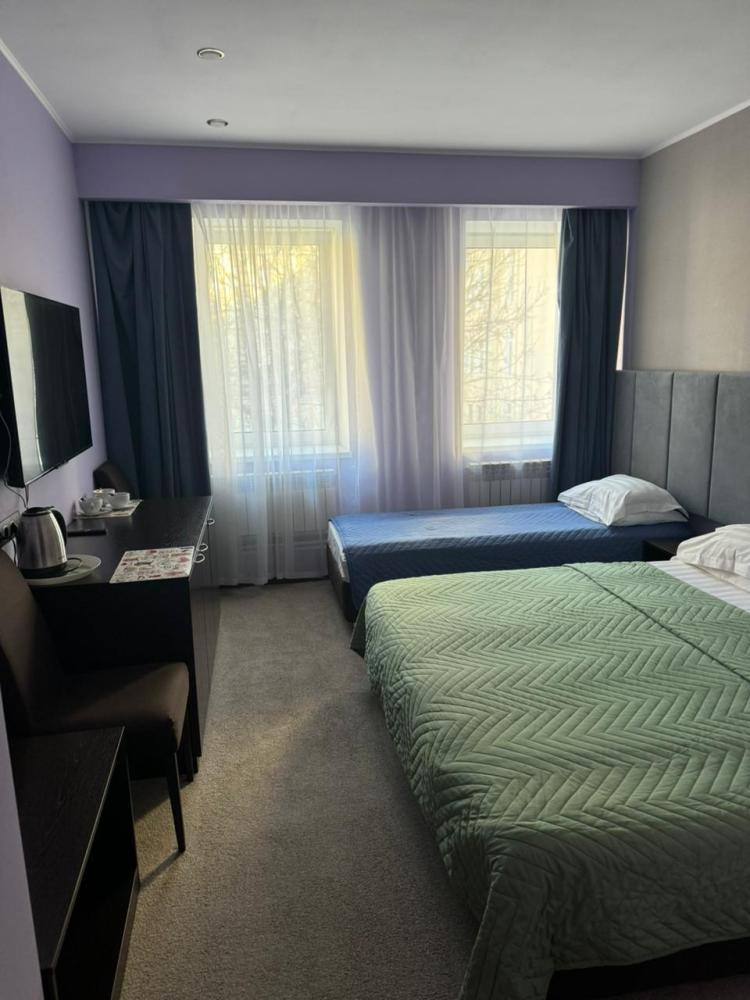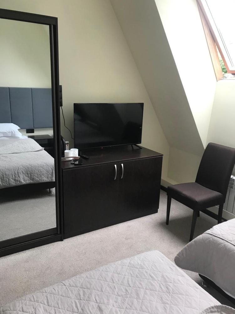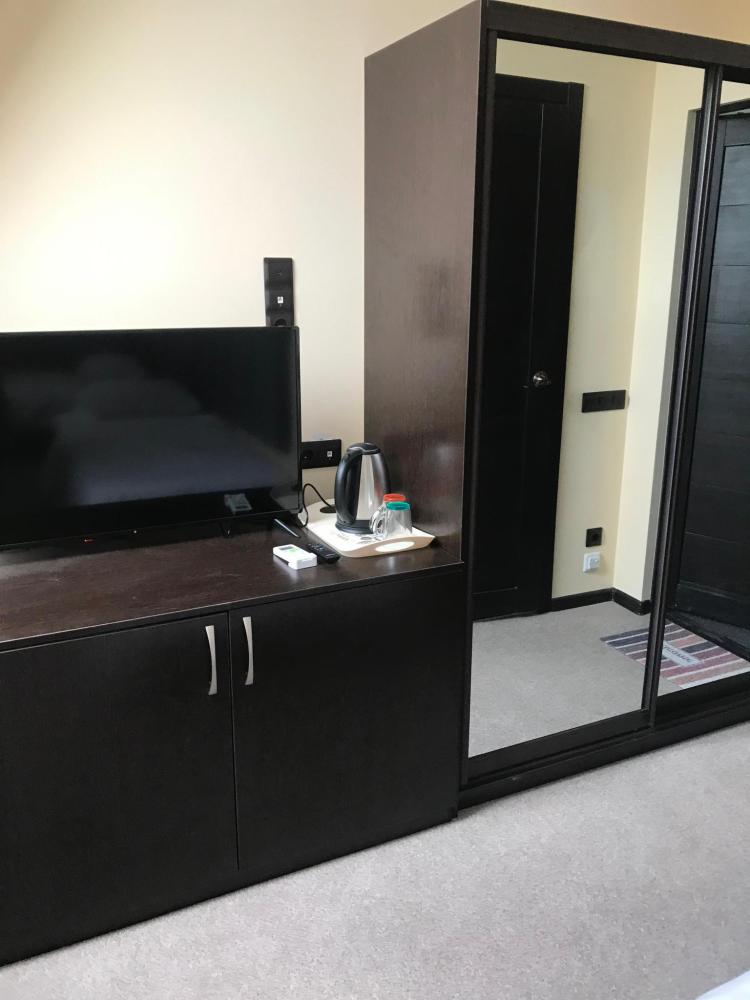 В номере: двуспальная кровать, односпальная кровать, телевизор, шкаф.