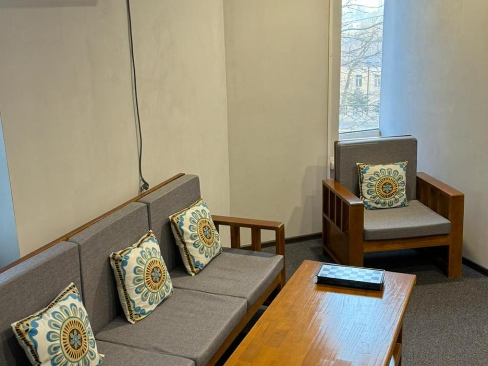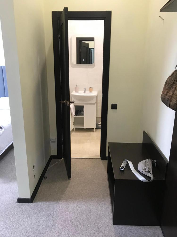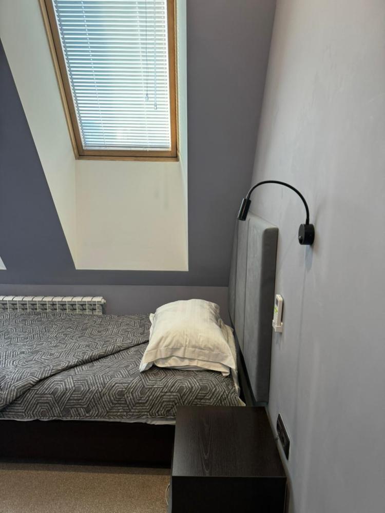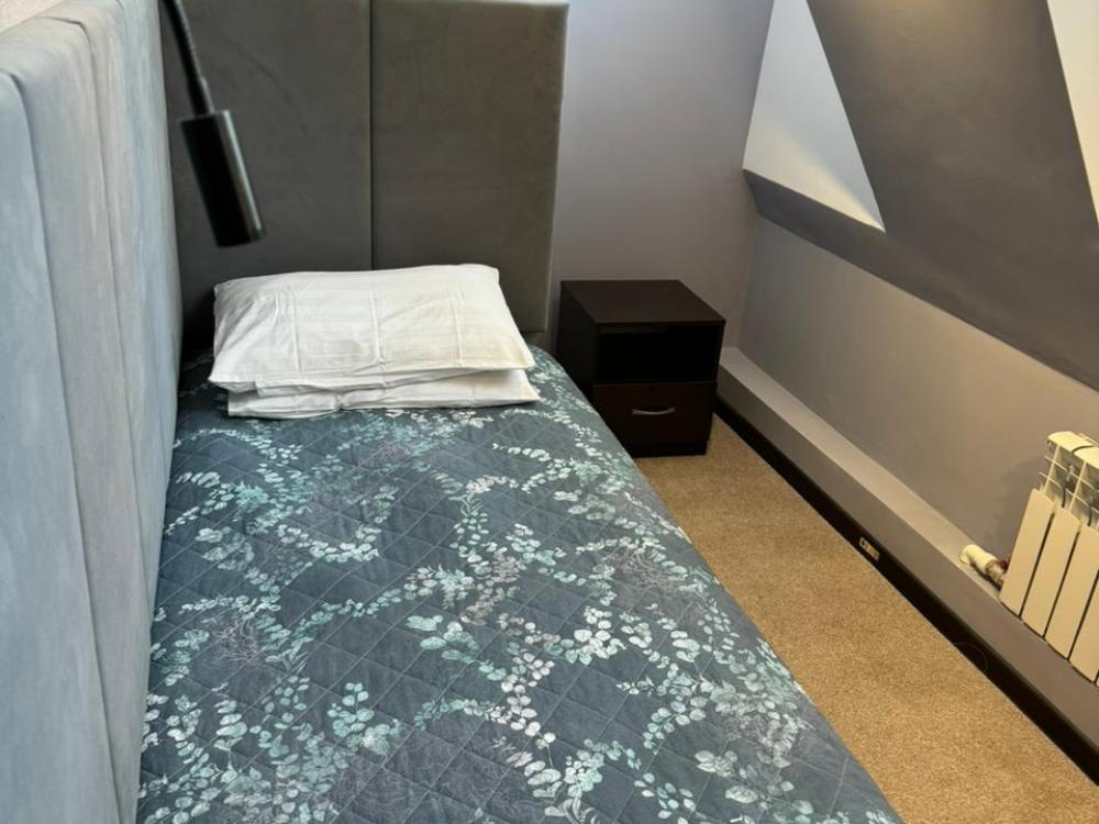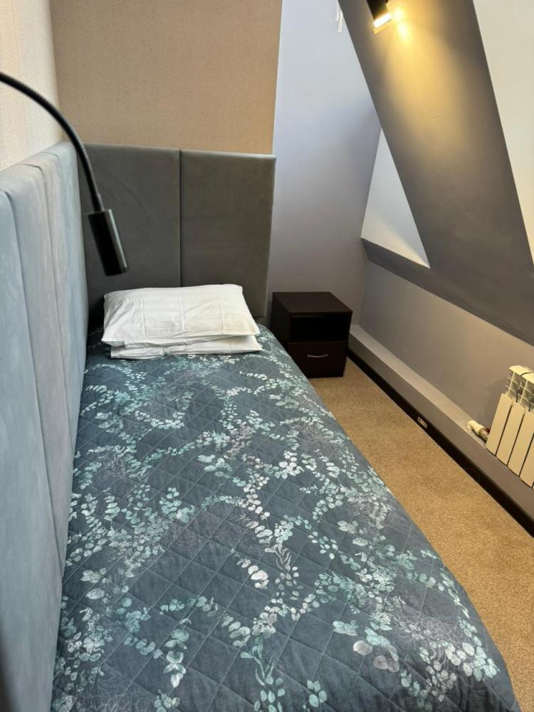 В номере: одна односпальная кровать, прикроватная тумба и светильник. Удобства в номере.