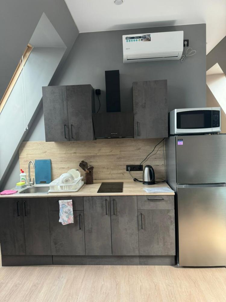 В апартаментах: кухонная зона, двуспальная кровать, односпальная кровать, телевизор, диван.