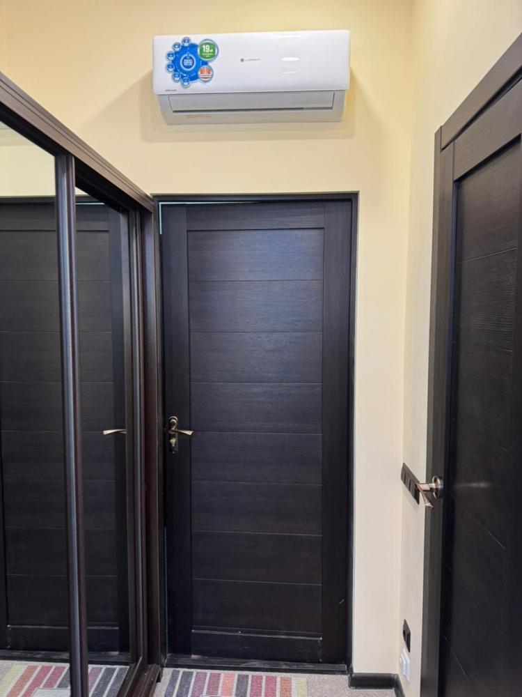 В номере: двуспальная кровать, телевизор, шкаф.
