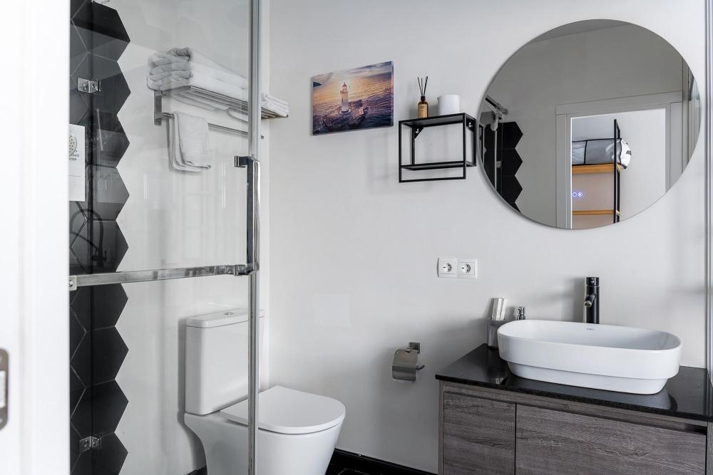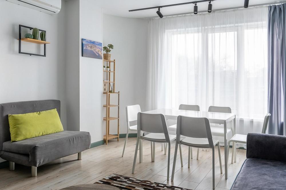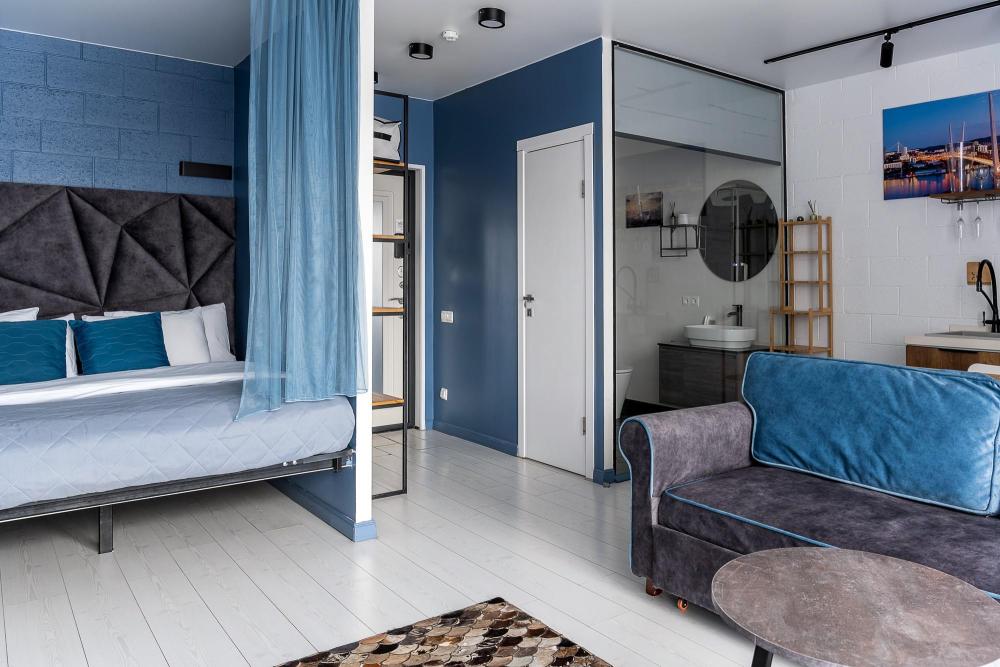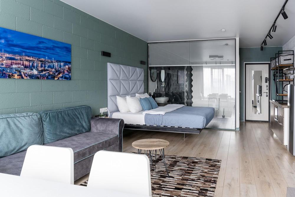 Апартаменты находятся в самом центре Владивостока, что позволяет гостям легко добраться до всех основных торгово-центральных улиц, Арбата, набережных, кафе и ресторанов. Мы приложили все усилия, чтобы ваше пребывание в наших апартаментах было комфортным и уютным, а работа — продуктивной. Особенность номера — стеклянная стена в интерьере, которая позволяет естественному свету проникать в ванную комнату, что делает ее более светлой и приветливой. Витражное окно создает ощущение простора, в то же время, она сохраняет чувство приватности, поскольку стекло можно закрыть плотной шторой. В номере одна двуспальная кроват, раскладной двухместный диван и одно раскладное кресло. Вам будут доступны полностью оборудованная кухня с микроволновой печью, холодильником, варочной панелью, капсульной кофемашиной и обеденной зоной. В апартаментах также имеется вся необходимая кухонная утварь. Особенно хотим выделить удобное размещение с просторной кроватью, дополнительными спальными местами и современными удобствами, которое позволит с комфортом разместиться семье из 5 человек. У вас будет возможность воспользоваться прачечной с стиральной и сушильной машинами, а также утюгом и гладильной доской. Кроме того, для вашего удобства в свободном доступе будут чайные наборы, кофе-капсулы, фен, банные принадлежности и тапочки. Smart TV и бесплатный Wi-Fi обеспечат вам высокоскоростной доступ к работе или возможность насладиться любимыми фильмами и передачами. Также предоставляется парковка для гостей. Приятным бонусом в расположении апартаментов, является прогулочная набережная с видовыми площадками и ротондой для уникальных панорамных фотографий с видом на Японское море. Достаточно просто перейти дорогу на другую сторону и вы в историческом месте города.