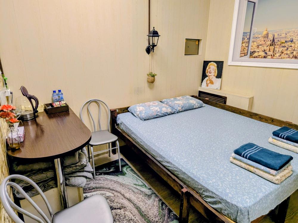В номере 2-х местная кровать,кондиционер,стол,мини холодильник,телевизор (без окна). Удобства на этаже.