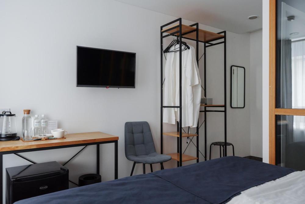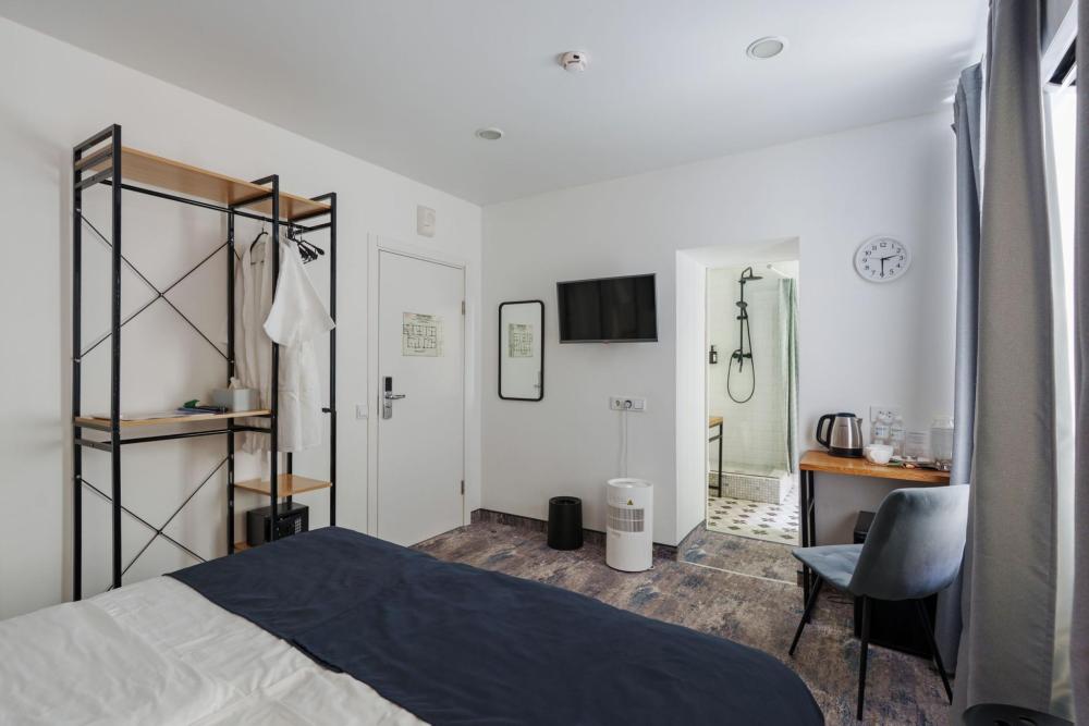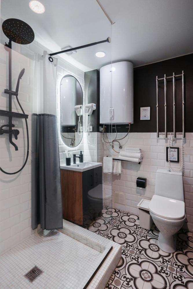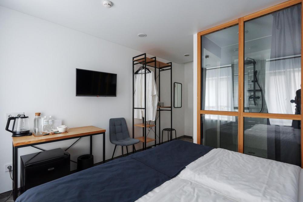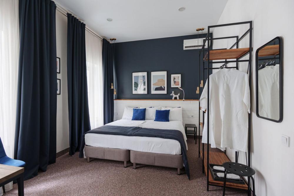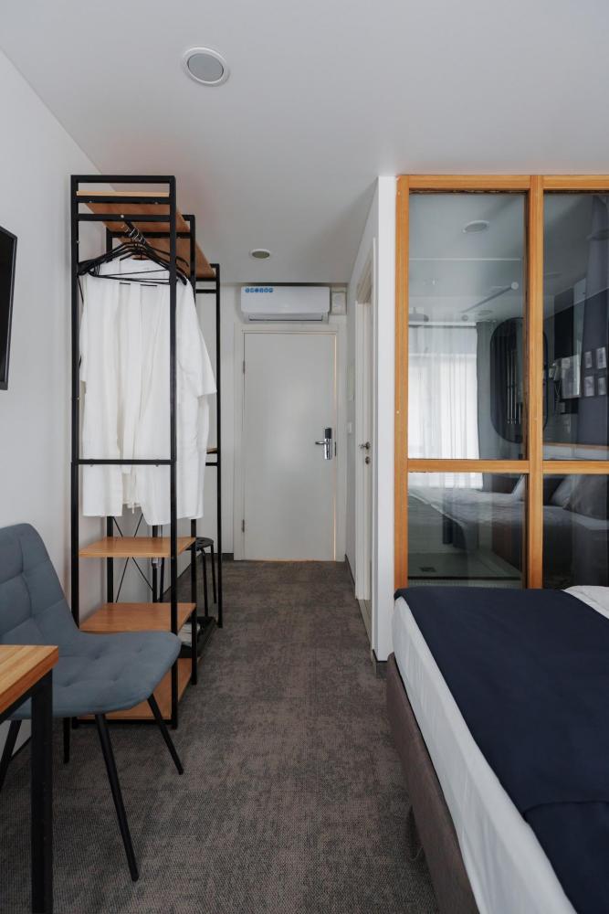 Улучшенные номера находятся на верхнем этаже нашего отеля. Оснащены всем необходимым. В номере: большая двуспальная кровать или две односпальные кровати , телевизор с плоским экраном, шкаф или гардероб, холодильник, электрический чайник, обеденный стол, кондиционер, гладильные принадлежности, рабочий стол, вешалка для одежды. В ванной комнате: туалетно-косметические принадлежности, туалет, ванна или душ, полотенца, тапочки, фен, туалетная бумага.