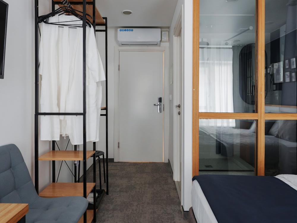 Уютный семейный номер, рассчитан на двух взрослых и одного ребенка. Одна большая комната и небольшая комната которой расположен стол и гардероб. Номер оснащён всем необходимым. Так же номер удобен для двух командировочных гостей. Есть возможность сделать две раздельные кровати. В номере: Две односпальные кровати или 1 двуспальная и 1 дополнительное место для ребенка, телевизор с плоским экраном, гардероб, холодильник, электрический чайник, чай, сладости, вода, обеденный стол, кондиционер, гладильные принадлежности, рабочий стол, вешалка для одежды. Смена полотенец раз в день, смена белья раз в трое суток. В ванной комнате: туалетно-косметические принадлежности, туалет, ванна, полотенца, тапочки, фен, халат, туалетная бумага.