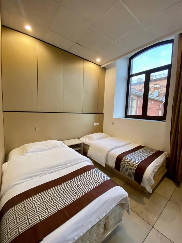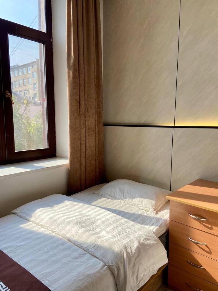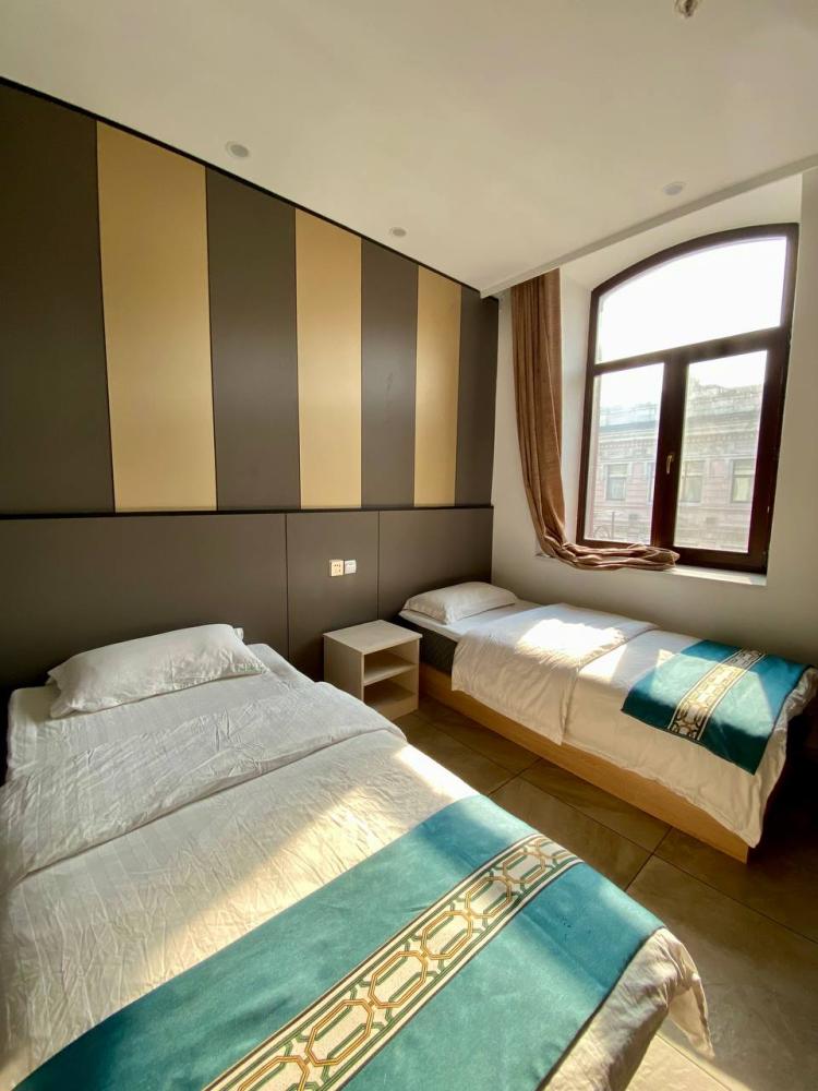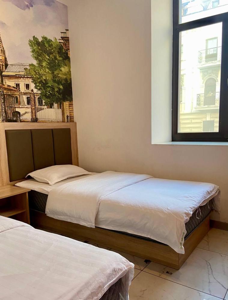 Уважаемые гости, В наличии есть несколько номеров с двумя односпальными кроватями и окном. Номера оборудованы спутниковым ТВ, холодильником, сейфом, рабочей зоной и собственным санузлом с душевыми принадлежностями. Вид из окна может быть на город, улицу или во двор, в зависимости от расположения номера. Дизайн каждого номера уникален. При необходимости мы готовы предоставить фото и видеообзоры забронированных вами номеров.