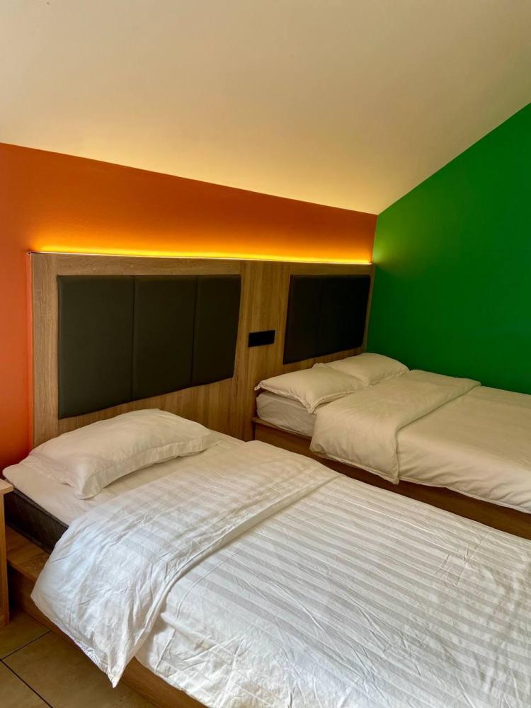 Стандарт трехместный, в номере 1 большая двуспальная кровать и 1 односпальная кровать, удобства в номере.
