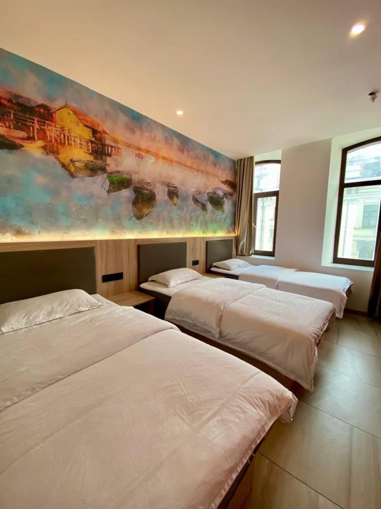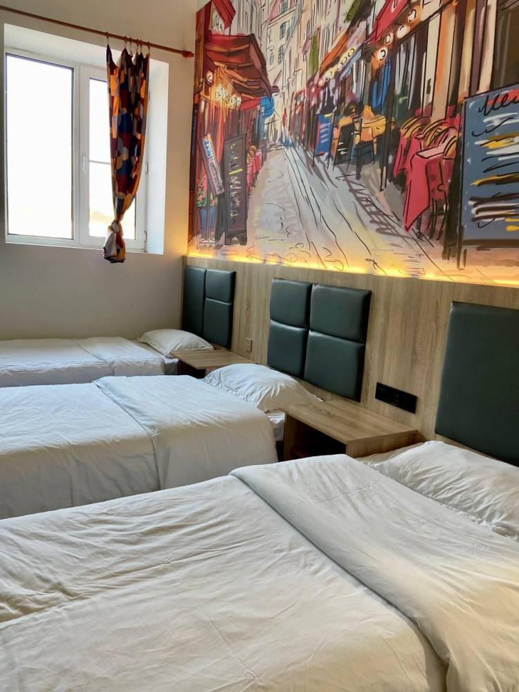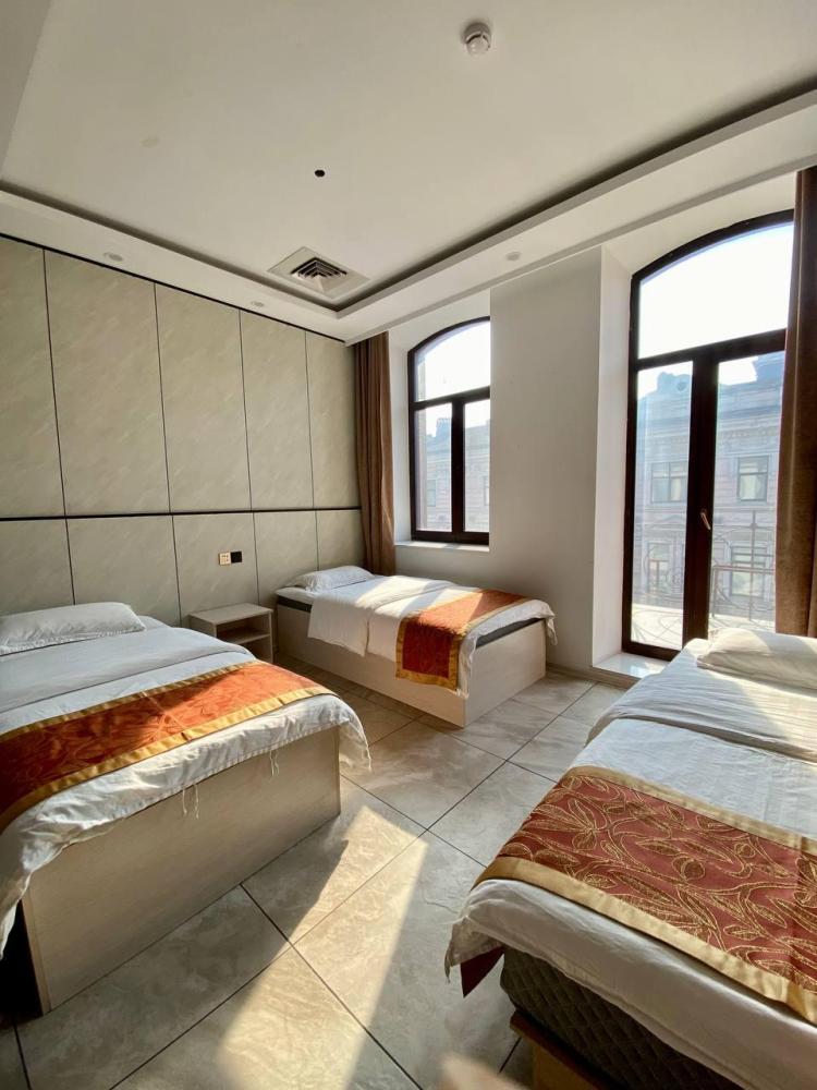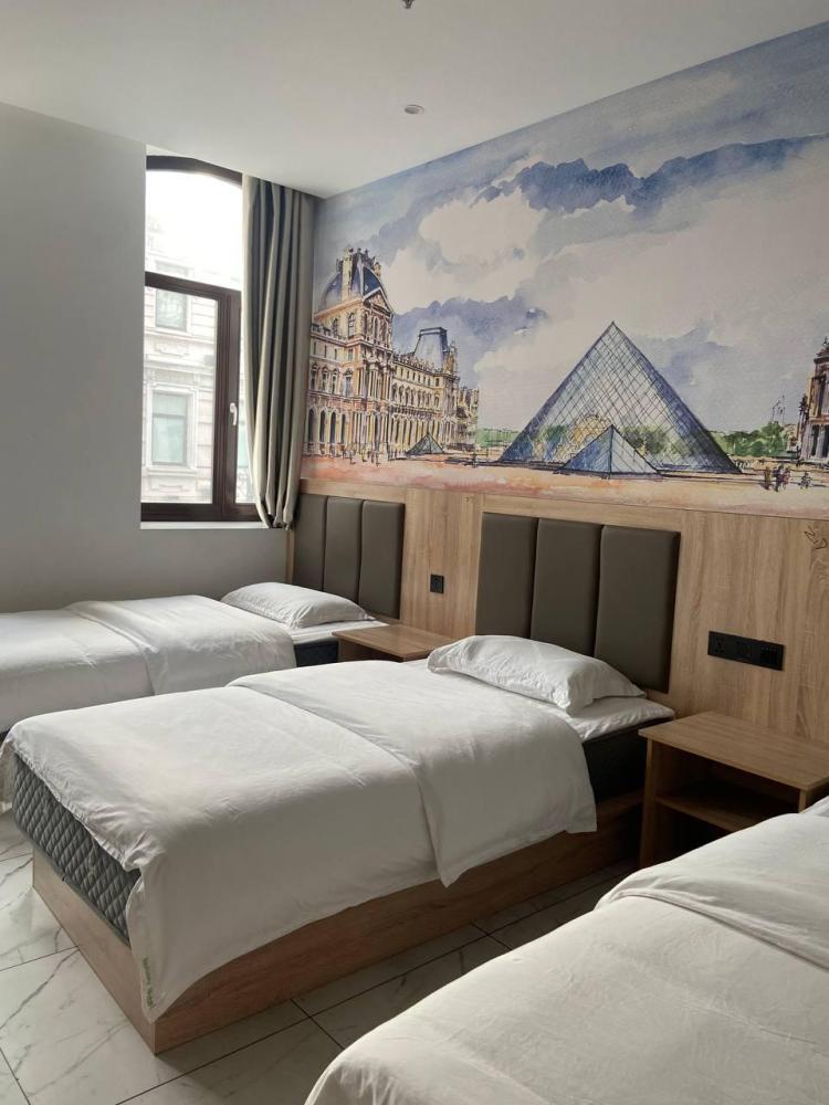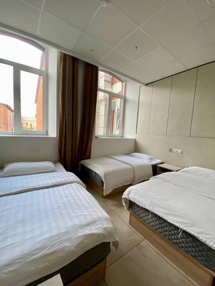 Уважаемые гости, В наличии есть несколько номеров с тремя односпальными кроватями и окном. Номера оборудованы спутниковым ТВ, холодильником, сейфом, рабочей зоной и собственным санузлом с душевыми принадлежностями. Вид из окна может быть на город, улицу или во двор, в зависимости от расположения номера. Дизайн каждого номера уникален. При необходимости мы готовы предоставить фото и видеообзоры забронированных вами номеров.