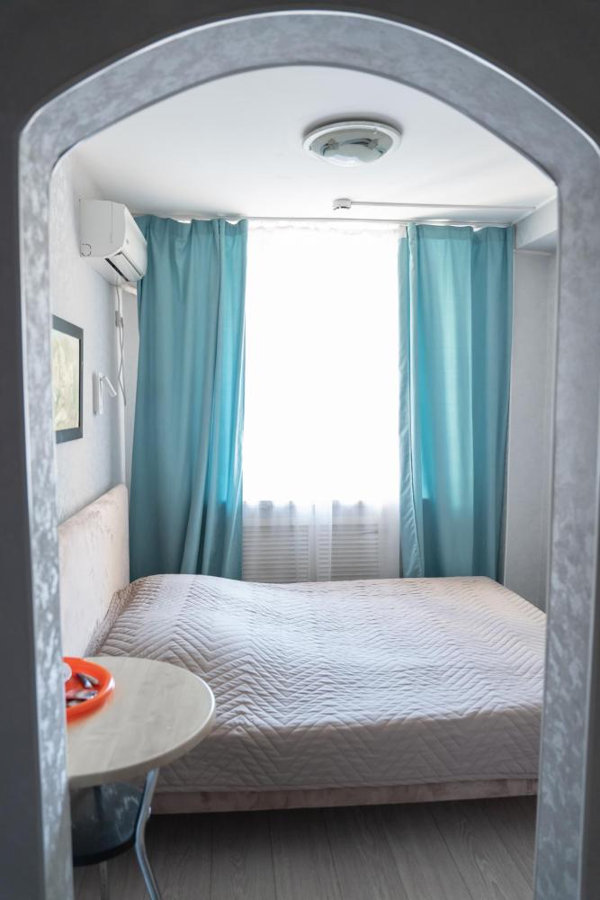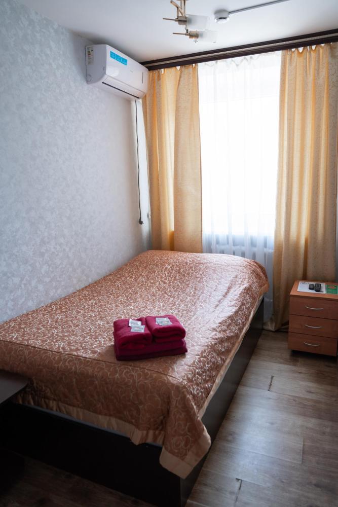 Номер оформлен в кремовых тонах. В номере: двуспальная цельная кровать 160*200, ЖК телевизор, журнальный столик, шкаф. Удобства в блоке на 3 номера.