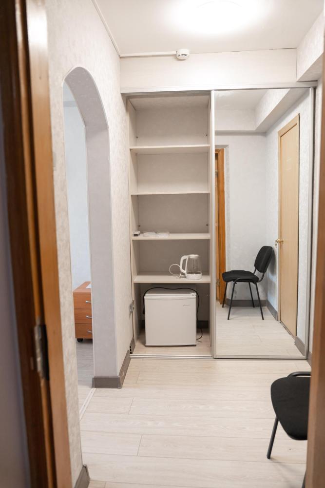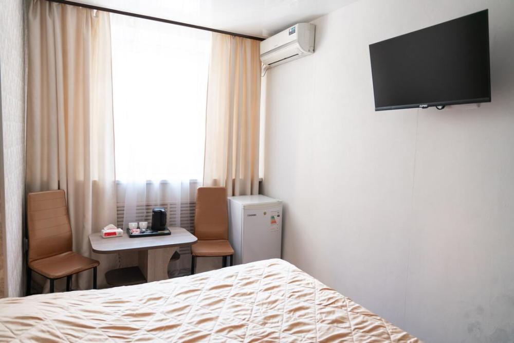 Номер оформлен в классических тонах. В номере: одна двуспальная или две односпальные кровати, ЖК телевизор, журнальный столик, шкаф, ванная комната с одноразовыми средствами личной гигиены, холодильник,фен.