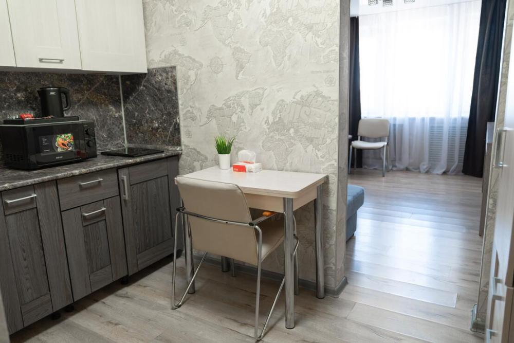 В номере: двуспальная кровать, диван (двуспальный), два ЖК телевизора, журнальный столик, шкаф; отдельная кухня оборудованная мойкой, плитой, холодильником, посудой; ванная комната с одноразовыми средствами личной гигиены.