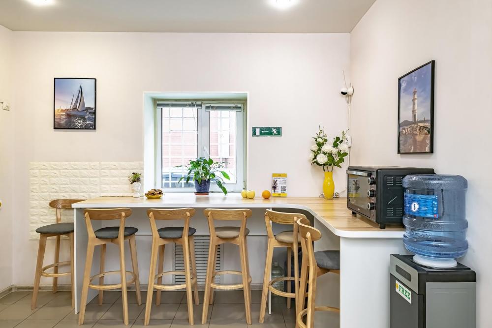 Гости могут пользоваться в кухонной зоне всем, холодильником, микроволновой печью, печкой, водой, кофе машиной, чайником. Имеется бесплатный чай, кофе, вода. Постельное белье всегда чистое, выдается полотенце, его можно менять, если нужно. На три номера 1 туалет и 1 душ. В душевых и туалете есть жидкое мыло. Каждый номер отдельный номер оснащен кондиционерами.