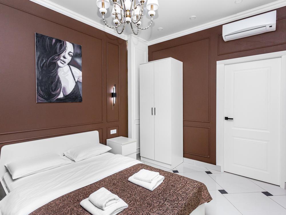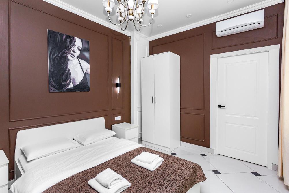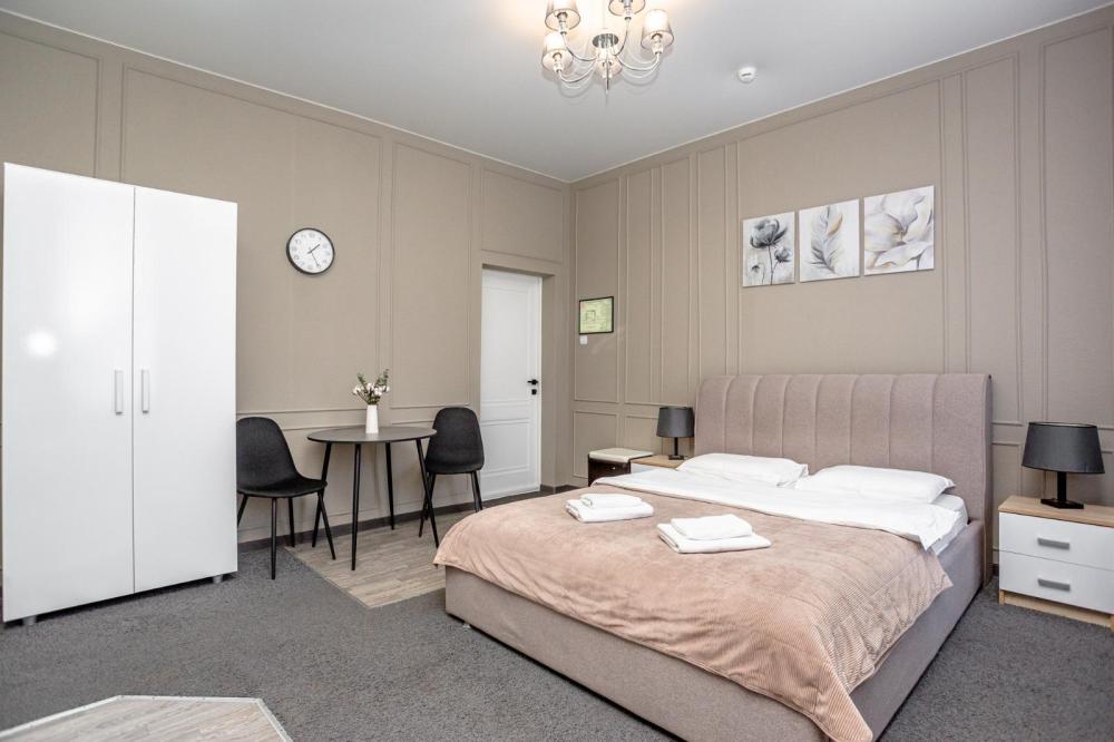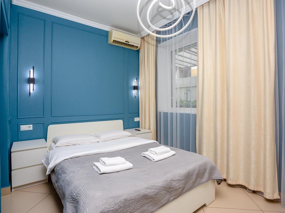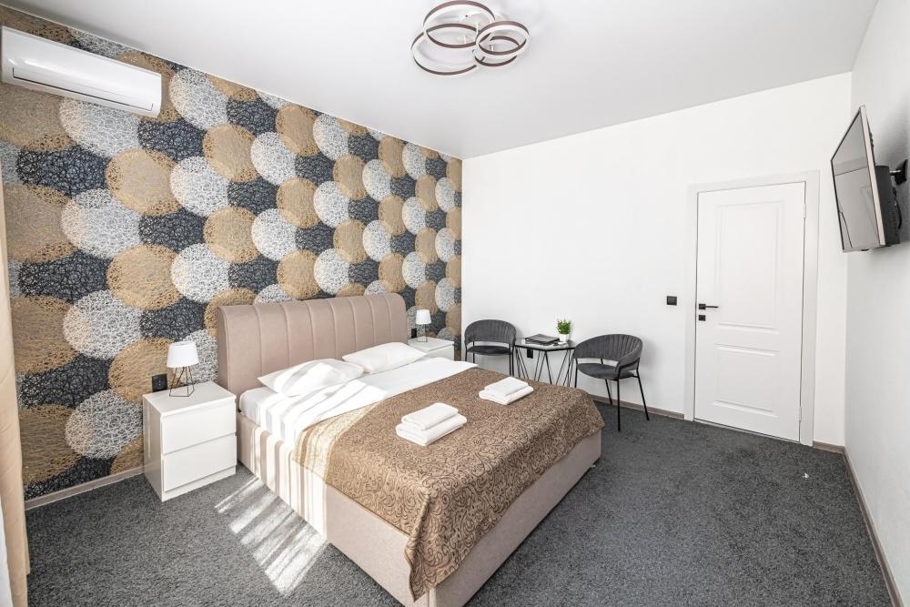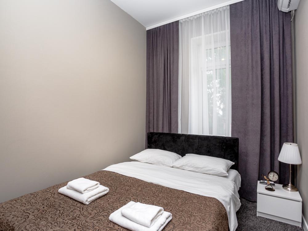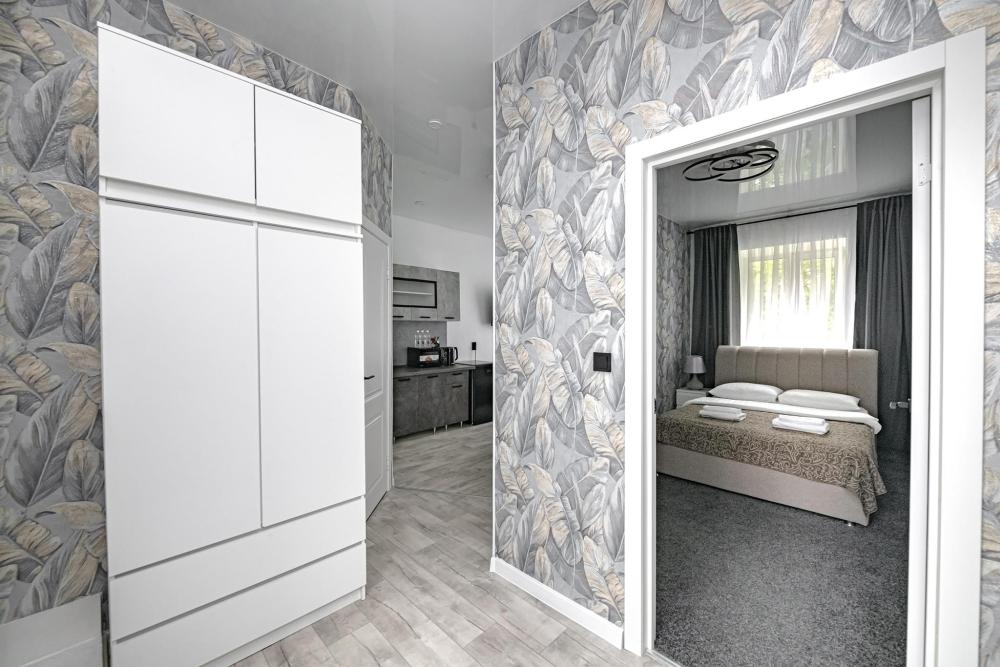 Комфортабельные однокомнатные номера категории "Улучшенный", отличаются немного большей площадью, а также наличием кухни с дополнительным спальным местом (раздвижной диван). Номер сочетает в себе все необходимое для полноценного отдыха для семьи или группы из нескольких человек. Апартаменты соответствуют международным стандартам и выполнены по индивидуальным дизайнерским проектам. Наполнение каждого номера включает: • кровать двуспальная (DBL); • кресло-кровать (уточнять при бронировании); • диван раздвижной; • кухонный гарнитур; • ванная комната с душевой кабиной, сан.узлом, стиральной машиной, туалетными принадлежностями, феном и зеркалом; • кондиционер; • холодильник, микроволновая печь, чайник, печь, полный комплект посуды на 6 персон. • утюг, гладильная доска, сушка для белья; • стол, стул, лампа; • ЖК телевизор; • беспроводной Интернет (Wi-Fi).