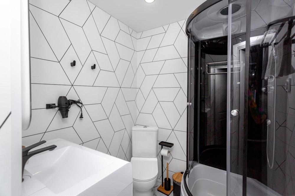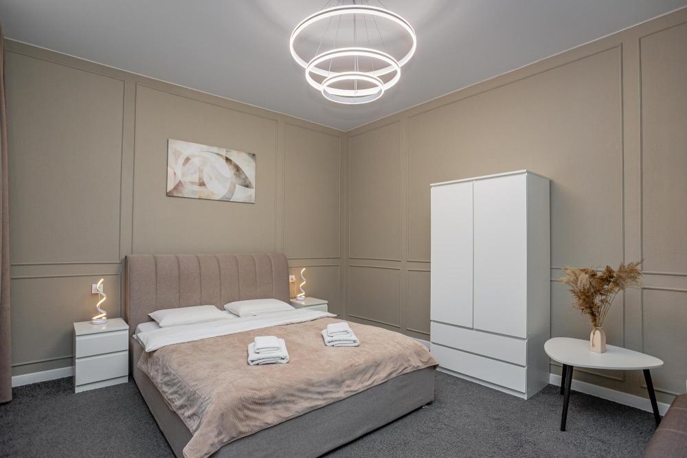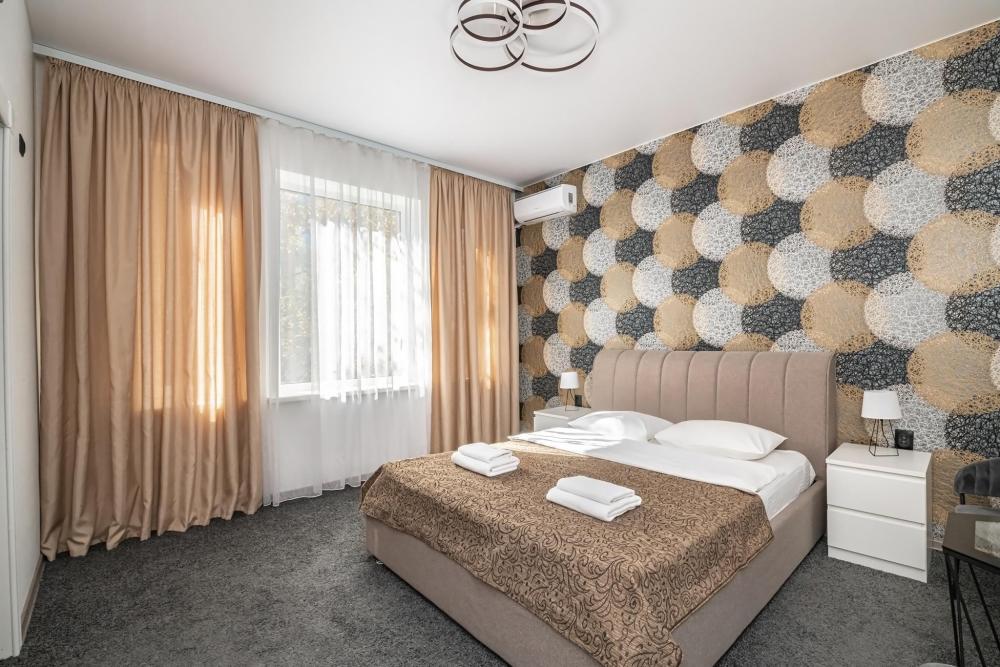 Комфортабельные одно- и двухкомнатные номера категории «Люкс», отличаются оригинальным исполнением и более дорогим оснащением. Номер сочетает в себе все необходимое для полноценного отдыха и соответствуют международным стандартам. Наполнение каждого номера включает: • кровать двуспальная (DBL); • диван раскладной; • кухонный гарнитур; • ванная комната с душевой кабиной, сан.узлом, стиральной машиной, туалетными принадлежностями, феном и зеркалом; • холодильник, микроволновая печь, чайник, печь, полный комплект посуды на 4-е персоны; • кондиционер; • теплые полы; • стол, стул, лампа; • утюг, гладильная доска, сушка для белья; • ЖК телевизор; • беспроводной Интернет (Wi-Fi).