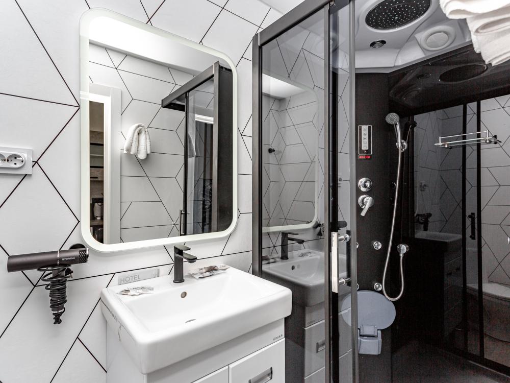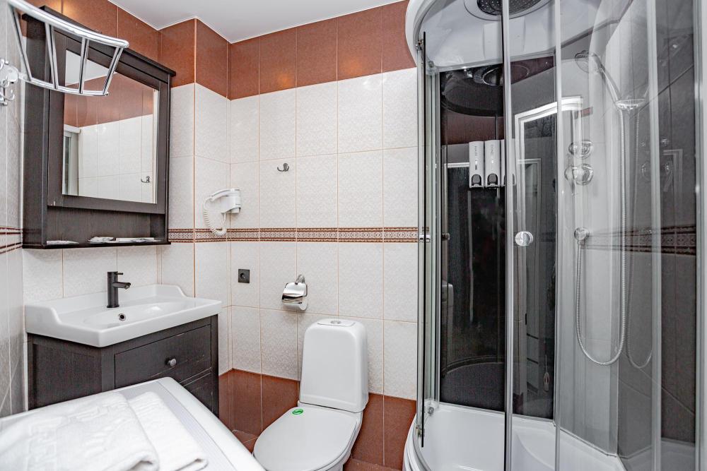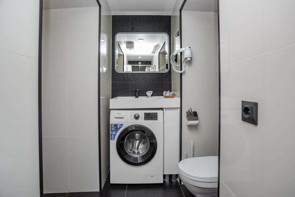 Номера категории «Стандарт» площадью 18 кв.м. сочетают в себе современный стиль, комфорт и уют. Апартаменты соответствуют международным стандартам и отличаются собственным оригинальным дизайном. В них есть все необходимое для полноценного комфортного отдыха. Наполнение каждого номера включает: • кровать двуспальная (DBL); • кресло-кровать • кухонный гарнитур • ванная комната с душевой кабиной, сан.узлом, стиральной машиной, туалетными принадлежностями, феном и зеркалом; • холодильник, микроволновая печь, чайник, печь, полный комплект посуды на 4-е персоны. • кондиционер; • стол, стул, лампа; • утюг, гладильная доска, сушка для белья; • ЖК телевизор; • беспроводной Интернет (Wi-Fi).