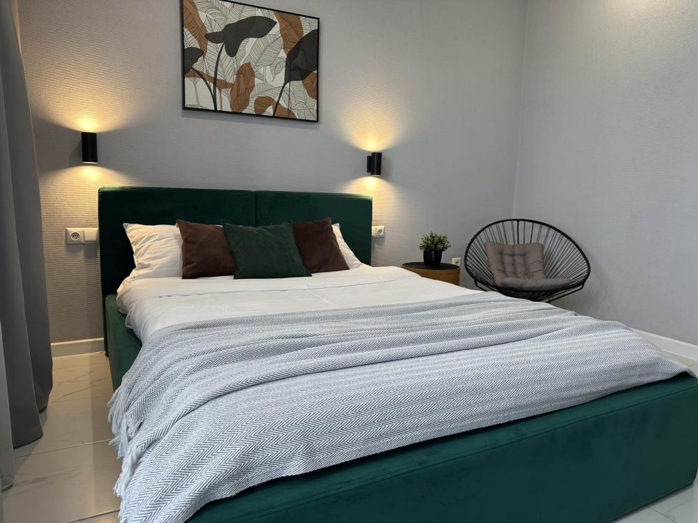 В апартаментах имеется все необходимое для комфортного проживания : одна двуспальная кровать, постельное белье, полотенца, телевизор смарт с выходом в интернет, кофемашина рожковая с натуральным кофе, кухонная зона оборудована всем необходимым для приготовления пищи, микроволновая печь, холодильник, стиральная машина, утюг, гладильная доска, фен, зубной набор , гель для душа, шампунь, быстрый интернет.