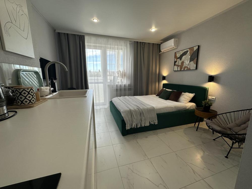 Уютная студия в новом доме . В апартаментах имеется все необходимое для комфортного проживания : одна двуспальная кровать, постельное белье, полотенца, телевизор смарт с выходом в интернет, кофемашина рожковая с натуральным кофе, кухонная зона оборудована всем...