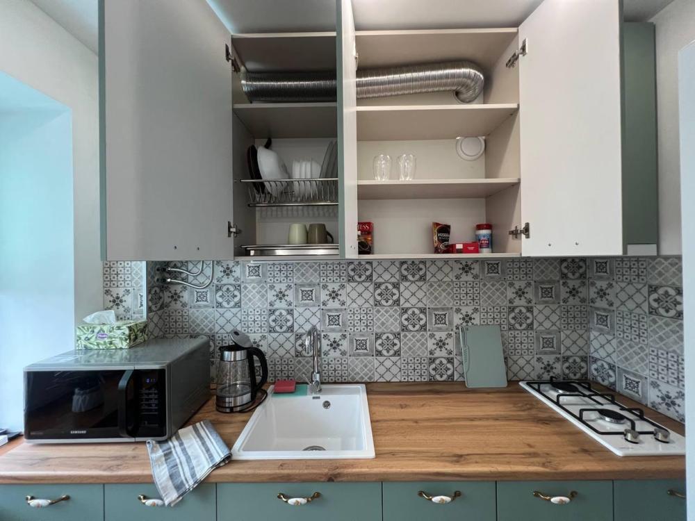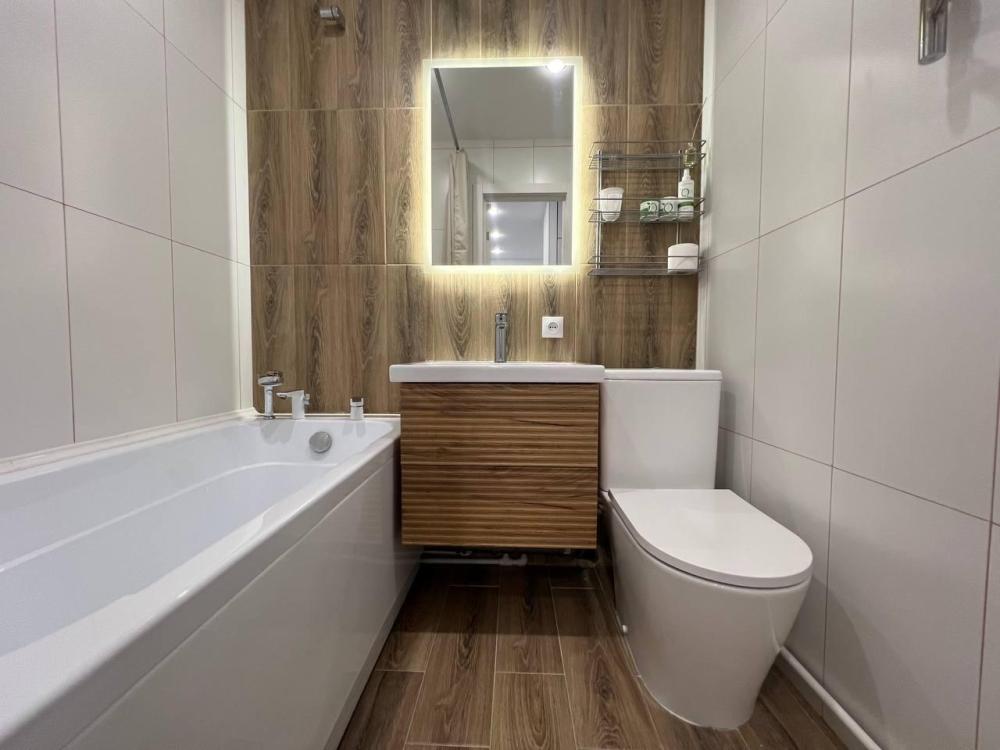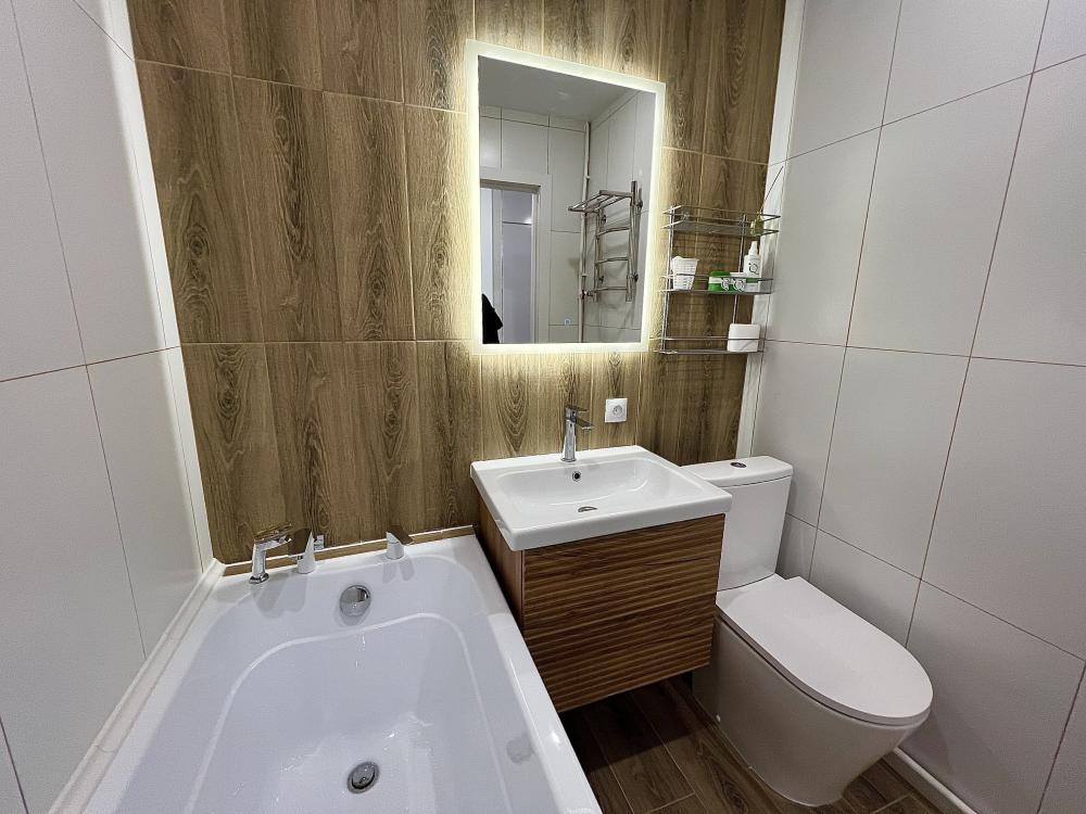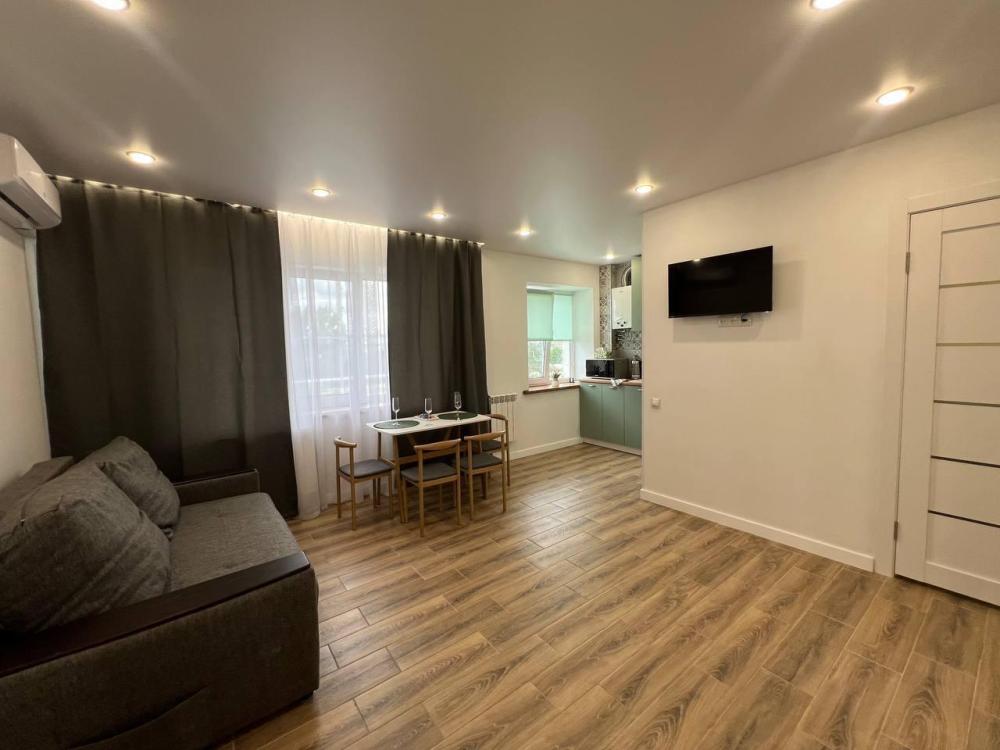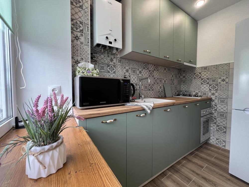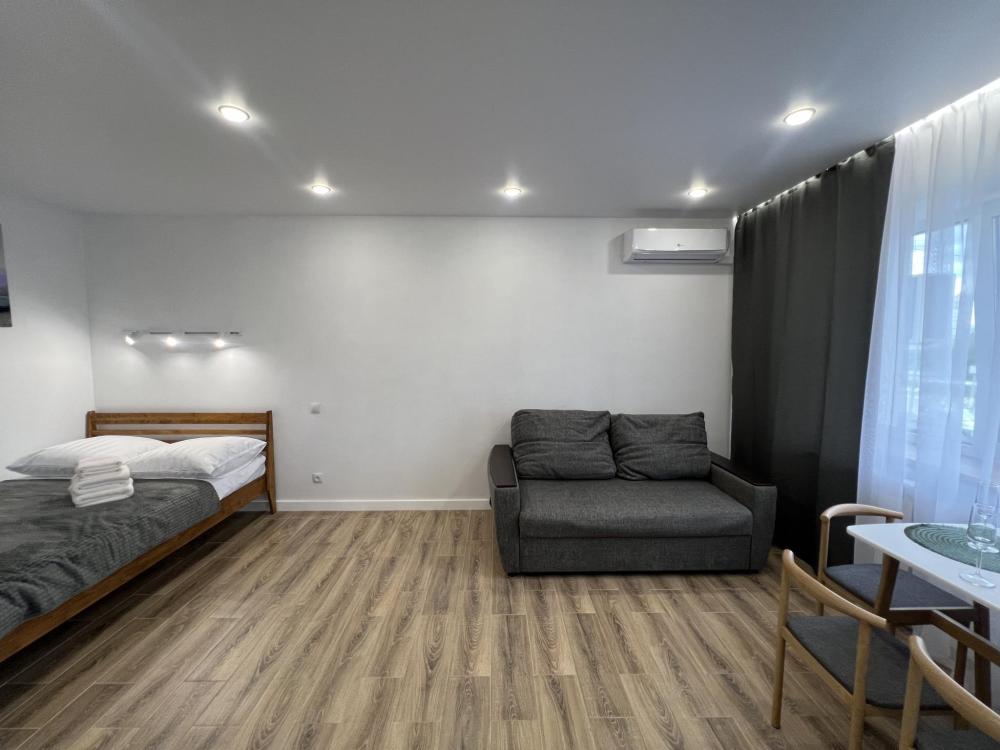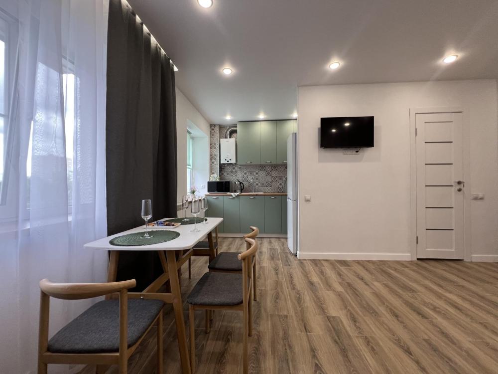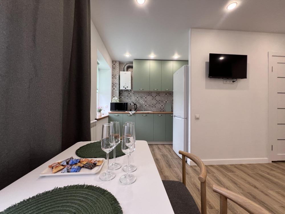 Квартира полностью укомплектована всем необходимым — приезжайте только с личными вещами: • Уютная спальня с двуспальной кроватью • Раскладной диван для дополнительного размещения • Высокоскоростной Wi-Fi, цифровое телевидение • Сплит-система — быстро охлаждает в жаркие дни • Полностью оборудованная кухня: плита, микроволновка, холодильник, чайник, посуда, чай и кофе • Стиральная машина, утюг, фен • Чистейшее белоснежное постельное бельё и мягкие полотенца • Гигиенические и уходовые принадлежности • Дизайнерский интерьер, современное освещение, приятная атмосфера