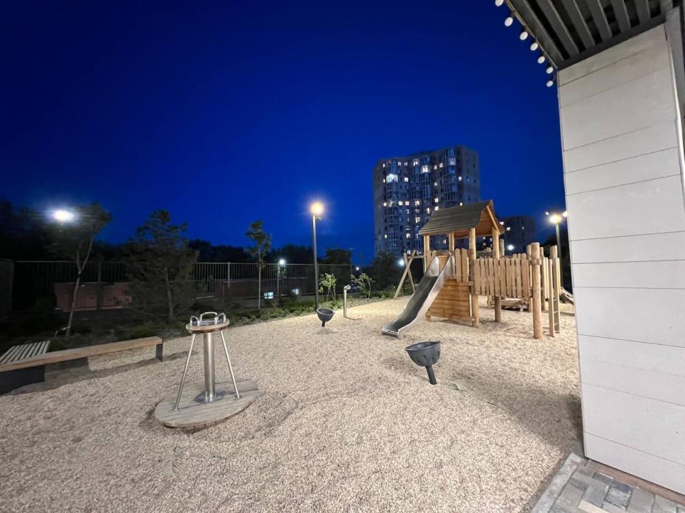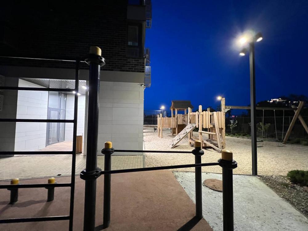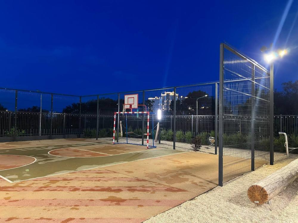На территории есть баскетбольная площадка и детская игровая зона. Парковка свободная, с местами проблем не возникает.