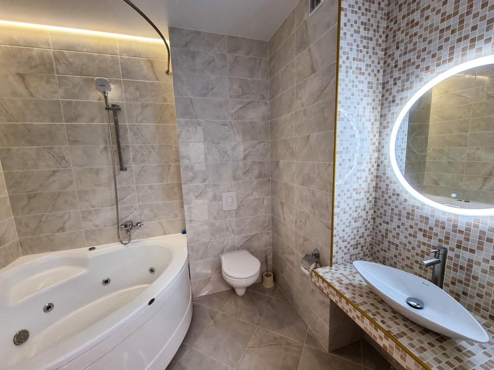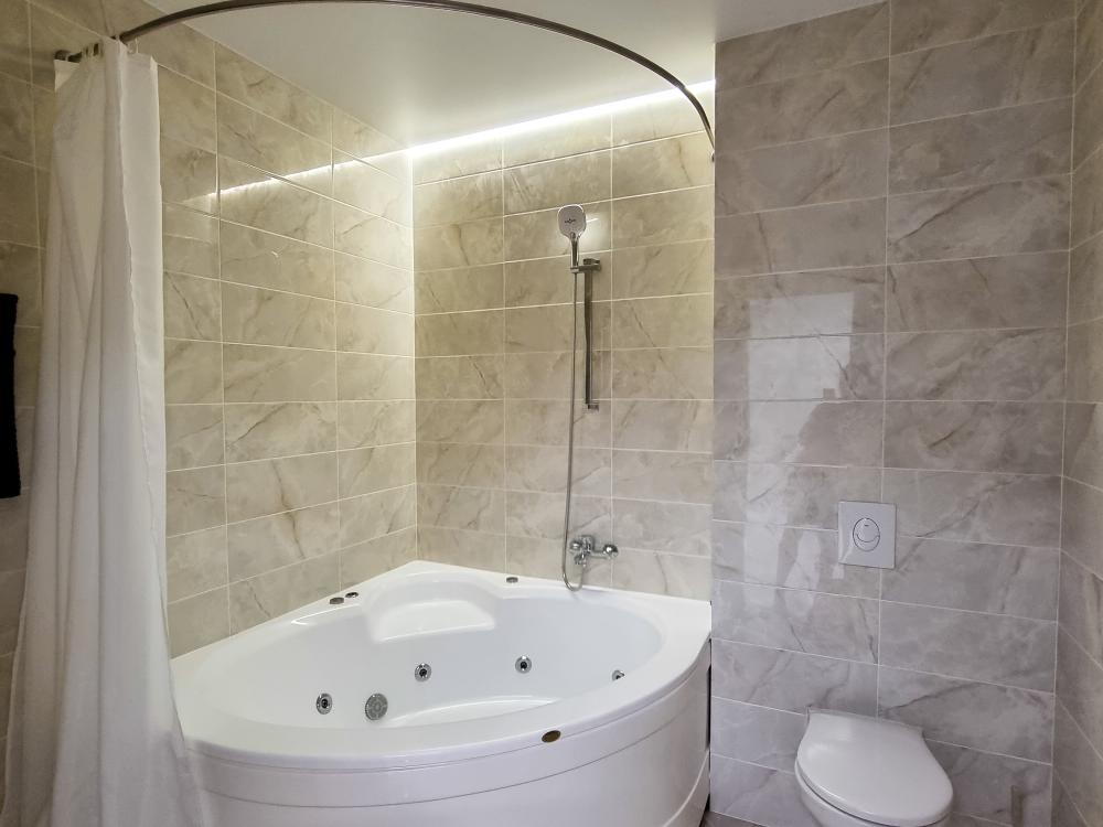 4 спальных места: двуспальная кровать (160×200) и раскладывающийся диван (140×200). Детская кроватка по запросу за доп плату (при наличии возможности предоставления)