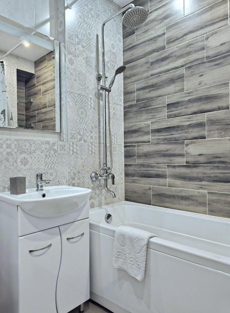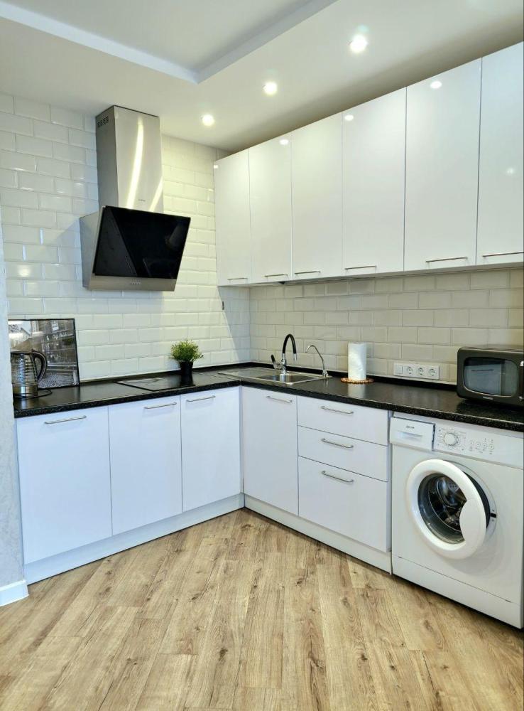 Современная однокомнатная квартира. Дизайнерский ремонт добавит расслабляющую атмосферу и хорошее настроение, а универсальный и стильный визуал отлично подойдет как для романтических свиданий, так и в качестве комфортного проживания. В квартире курение запрещено. Апартаменты включают в себя: - Мультимедиа: WI-FI, Проводной интернет, Цифровое кабельное ТВ (120 каналов, 30 HD) - Новая бытовая техника: жк тв, стиральная машинка, микроволновка, холодильник, сплит система, утюг, фен, чайник, фильтр для очистки воды и качественная немецкая сантехника. - Дополнительно: Спальные принадлежности по гостиничному классу люкс (белые сатиновые простыни, махровые полотенца). Средства гигиены, набор хорошей посуды и столовых принадлежностей - Удобства: Двуспальная кровать, кухонный гарнитур. Кухонный стол и два стула.Кондиционер.