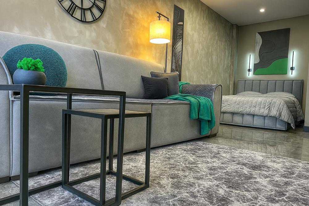 В квартире имеется все необходимое для комфортного проживания : двуспальная кровать и KING SIZE двуспальный диван; средства гигиены, такие как, шампунь, мыло, гель для душа; новый ЖК телевизор размеры 55 дюймов, посудомоечная машина; 2 сплит системы; бесплатный WI-Fi; техника (ЖК-телевизор со Smart-TV, стиральная машина, варочная панель, холодильник, микроволновая печь, электрочайник, фен, утюг, посудомоечная машина); посуда и кухонные принадлежности для приготовления и приема пищи; фильтр с обратным осмосом для чистой питьевой воды, а также сахар, соль. масло и необходимая крупа для быстрого приготовления пищи; чистое постельное бельё и полотенца высокого качества;