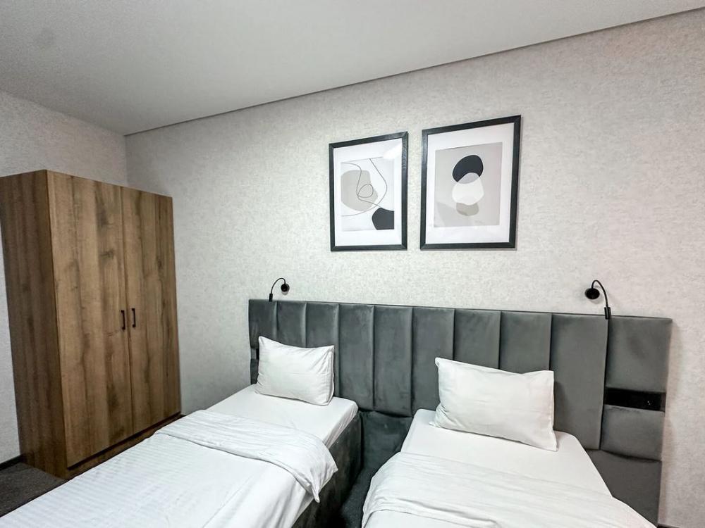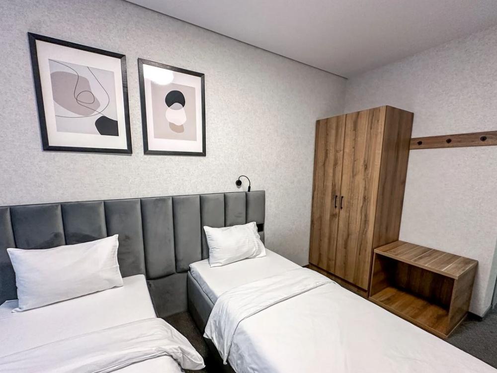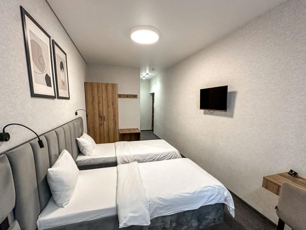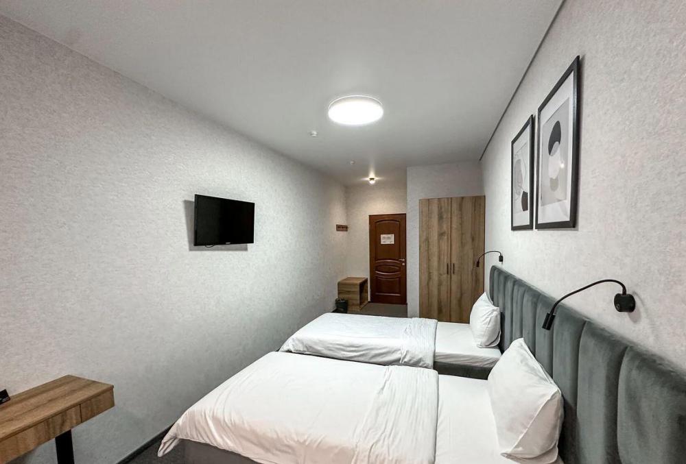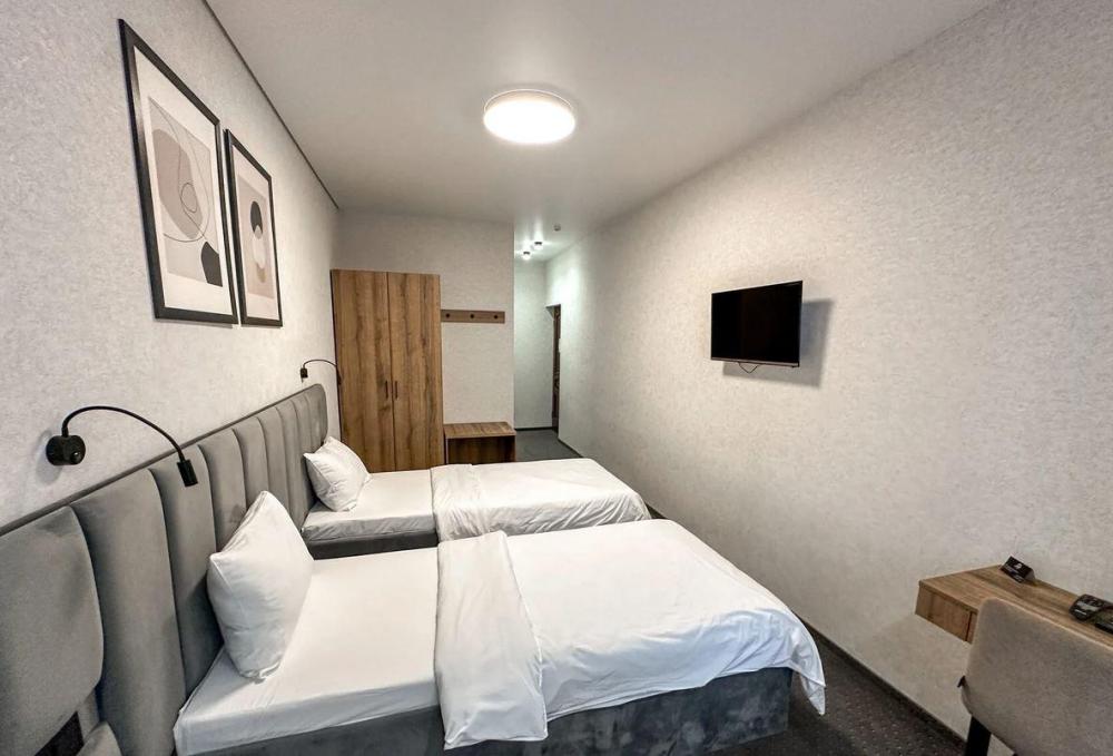 Номер оснащен всем необходимым для комфортного отдыха: двуспальная или две односпальные кровати, есть место для хранения вещей, удобства, телевизор, холодильник, электрический чайник, кондиционер.
