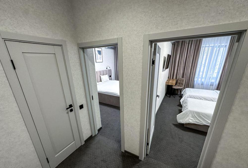 Номер оснащен всем необходимым для комфортного отдыха: двумя двуспальными или одной двуспальной и двумя односпальными кроватями, есть место для хранения вещей, удобства, телевизор, холодильник, электрический чайник, кондиционер.